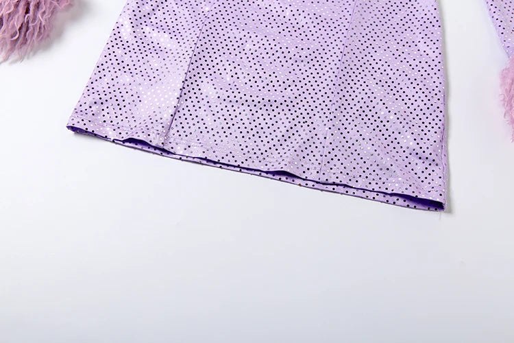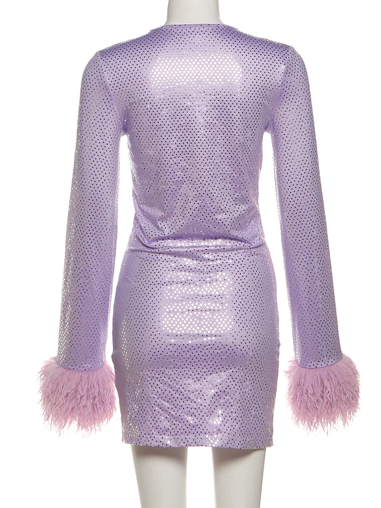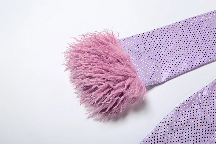 Hnewly Cutenew Y2K Sequin Dress Women Sexy Furry Patchwork Irregular Low Chest Metal Decoration Christmas Birthday Stretch Slim Bodycon