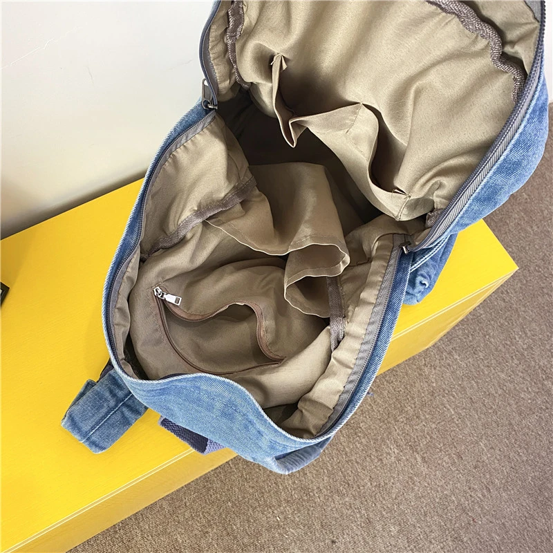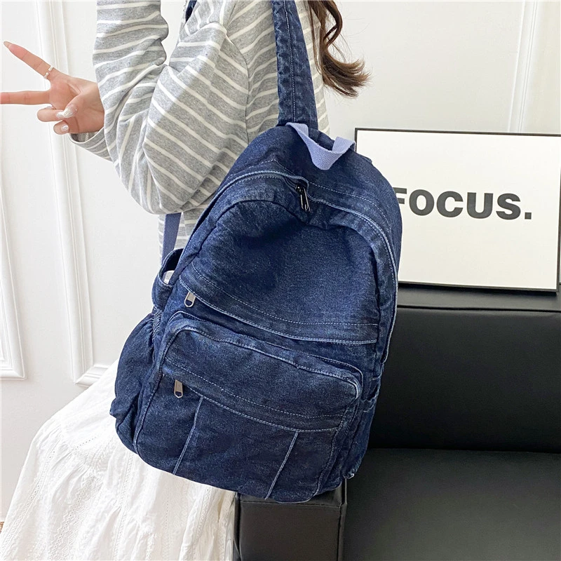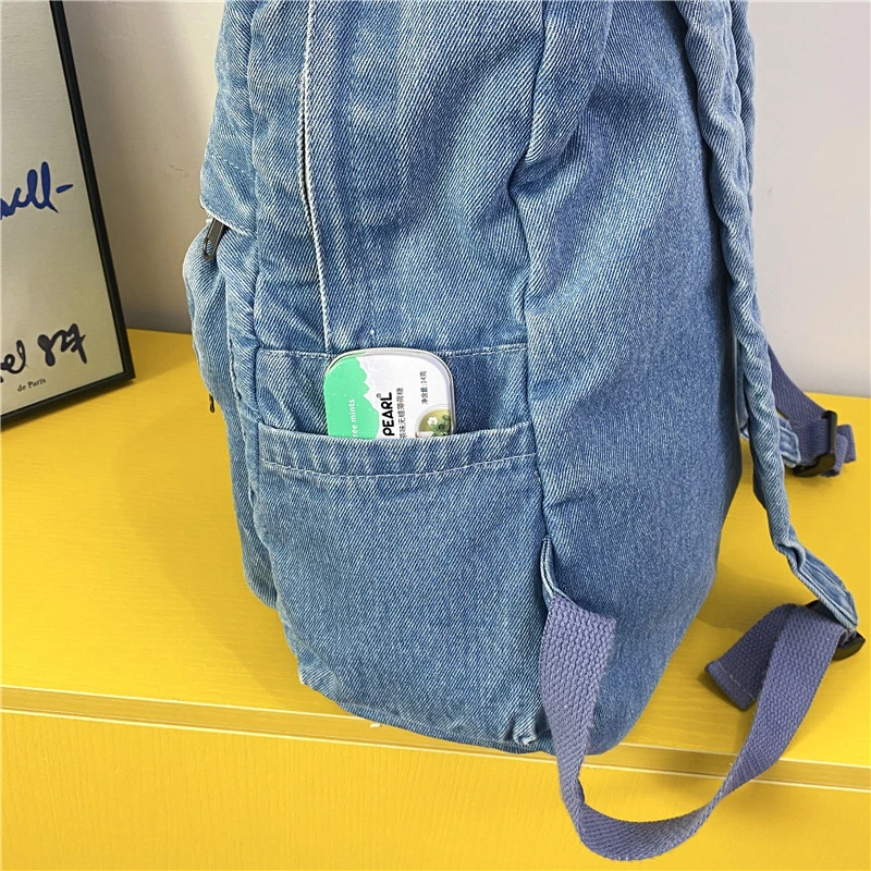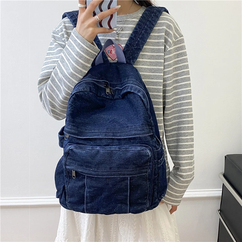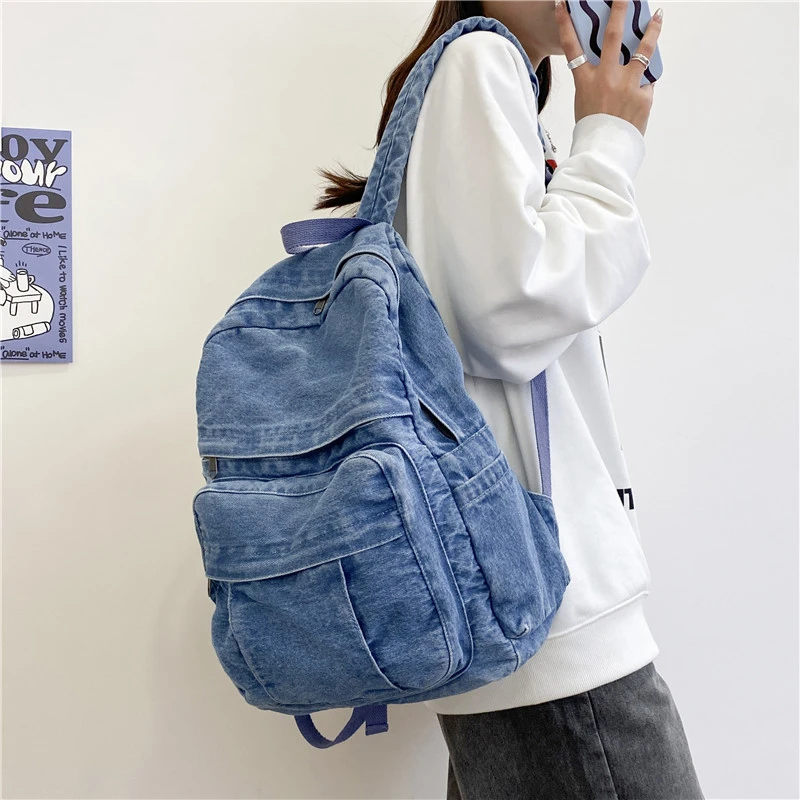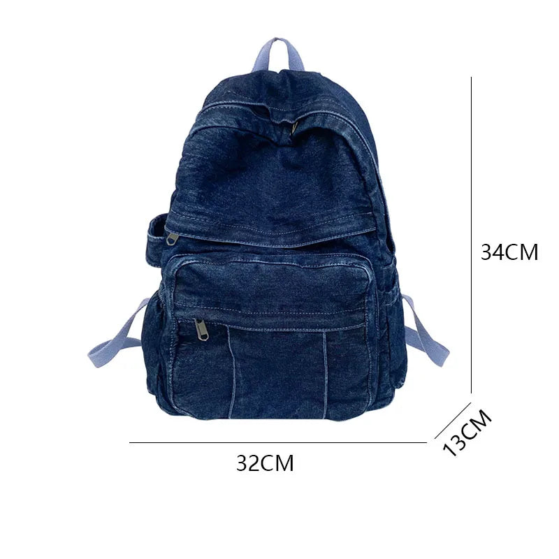 Hnewly Denim Vintage Backpack Women Shoulder Bag Large Capacity Jeans School Bag Female Daily Backpack Simple Laptop Backpack
