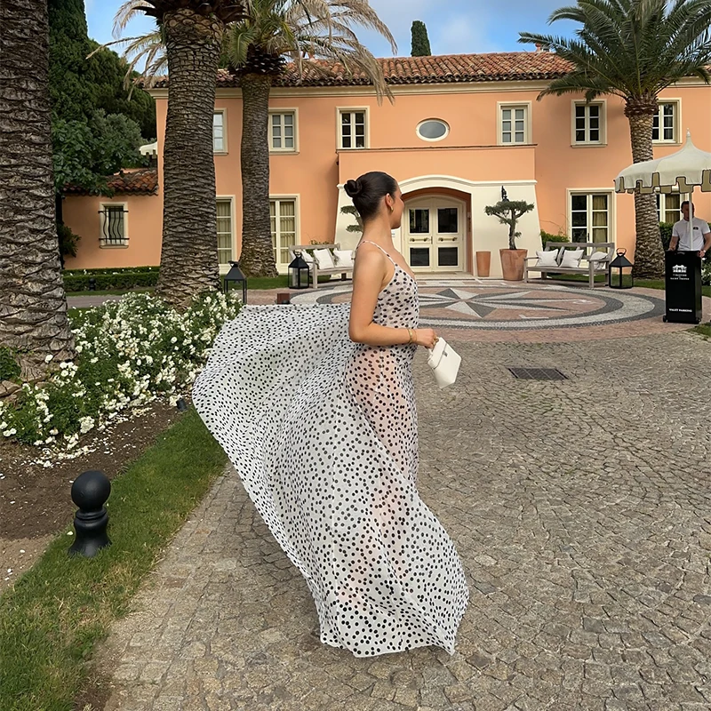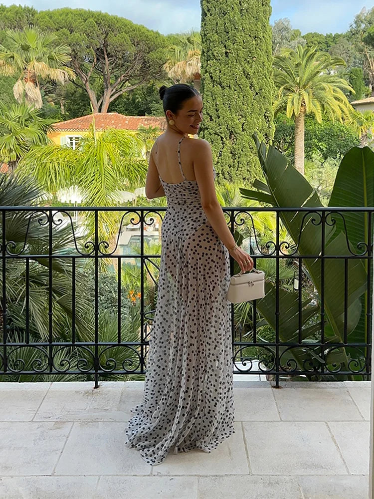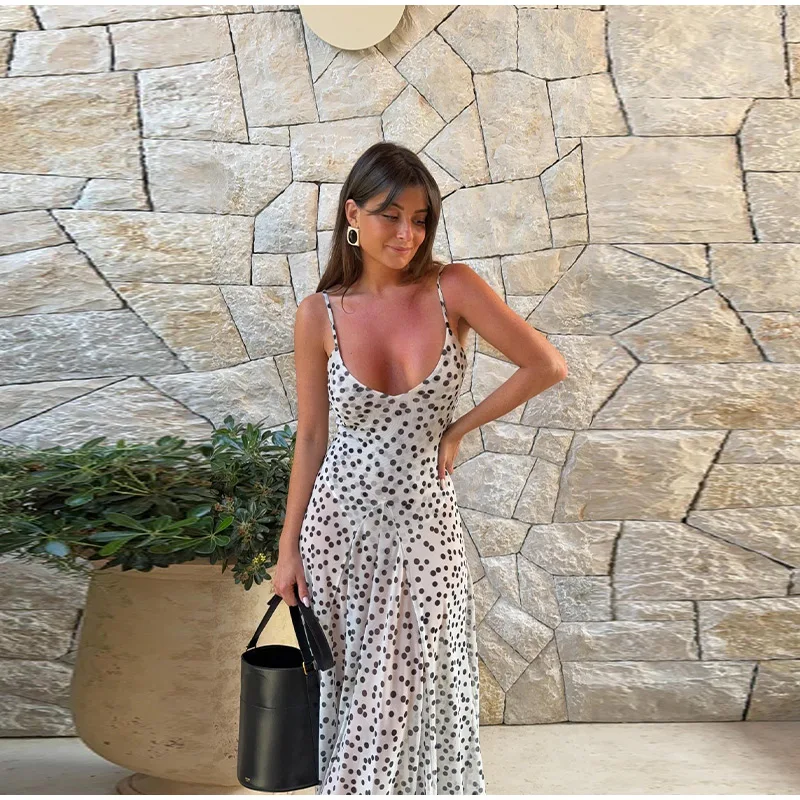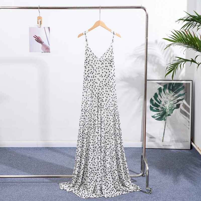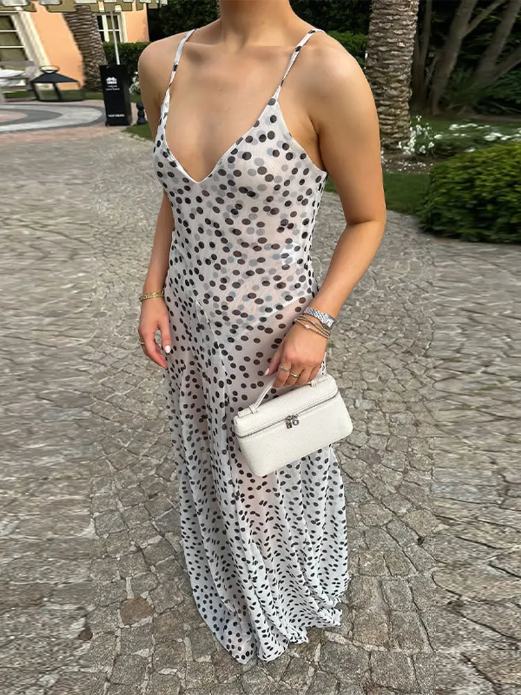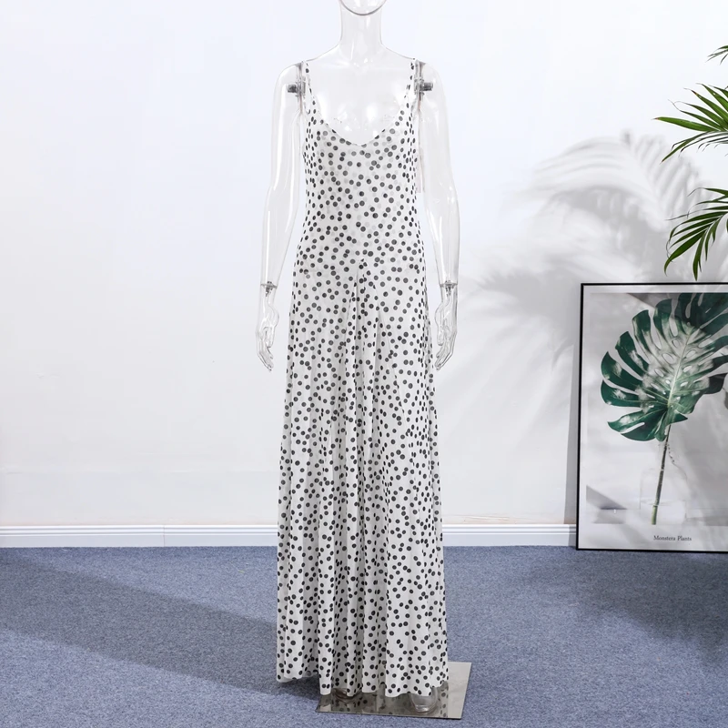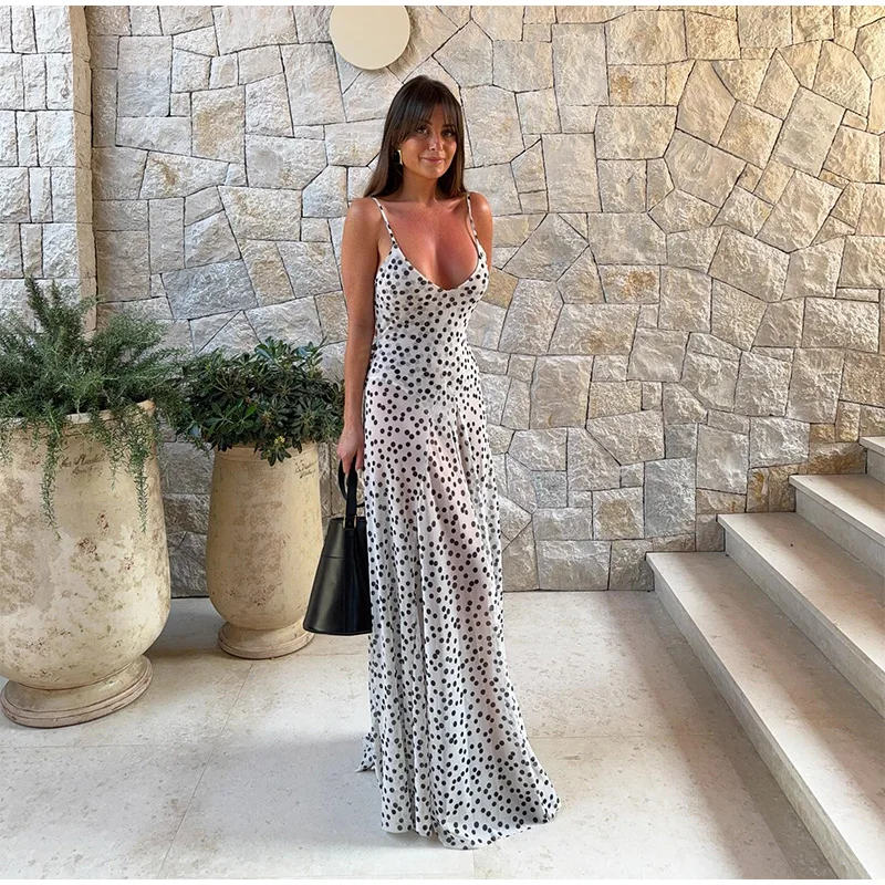 Hnewly Dot Party Women's Dress Halter Deep V-neck Sleeveless Backless Floor-length Female Dresses Summer Sexy Vacation Lady Robe