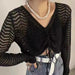 Hnewly Drawstring Pointelle Knitted Top Pullovers Women Sweater Cover Up Top Hollow Out Crop Jumper Knitwear Autumn Winter Y2K Outfit