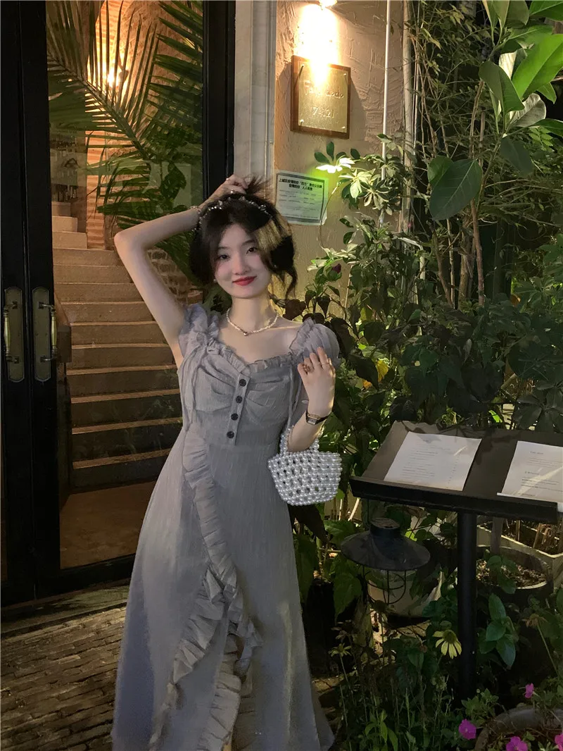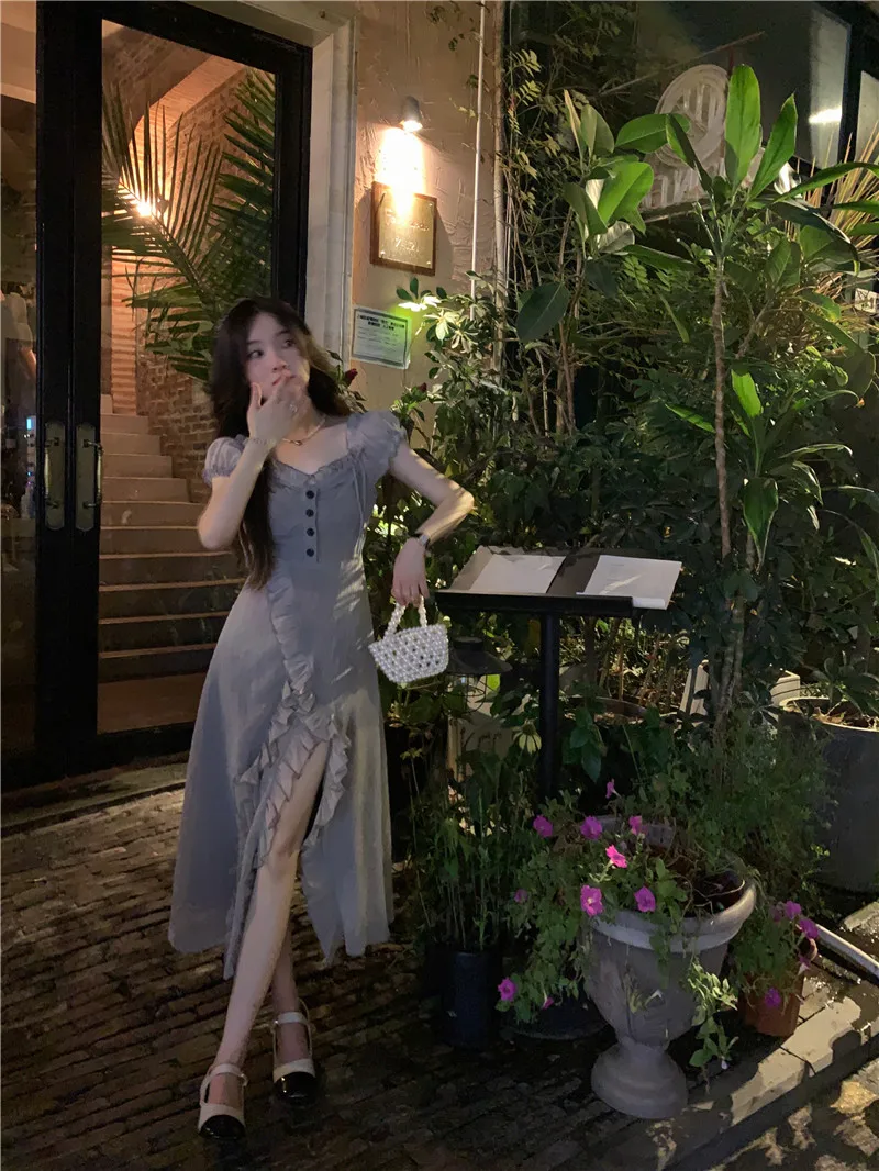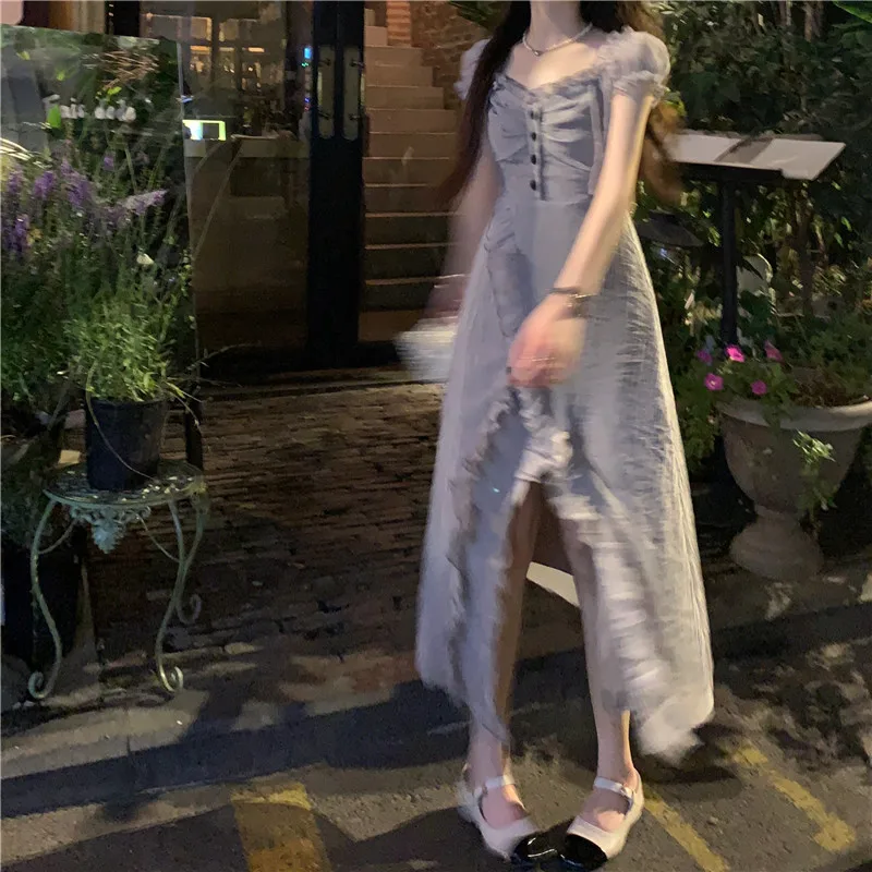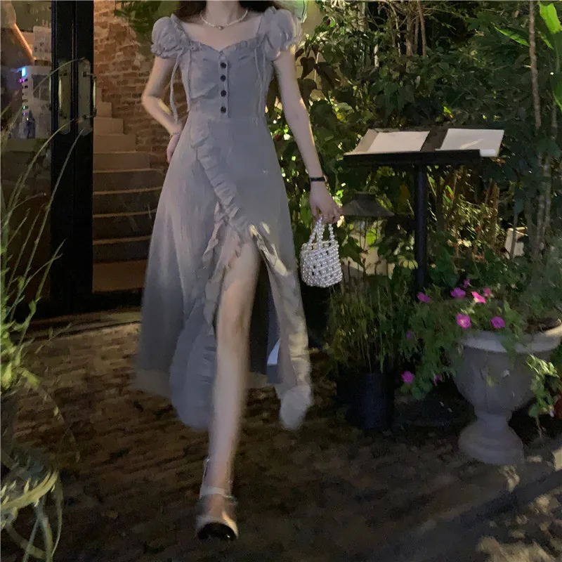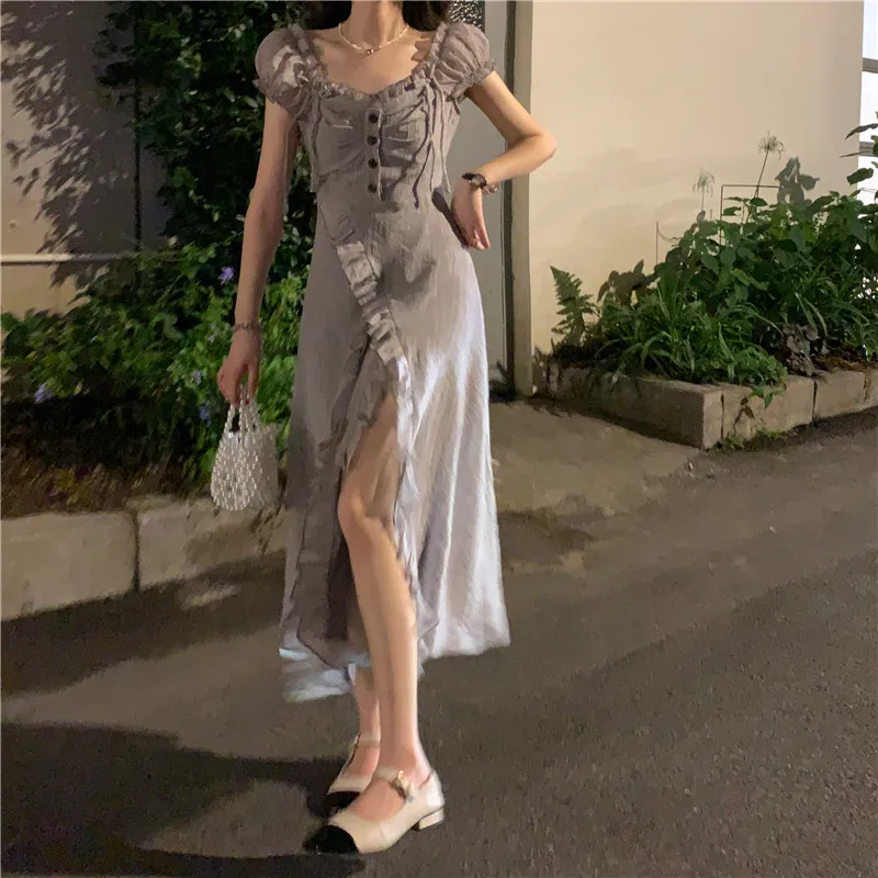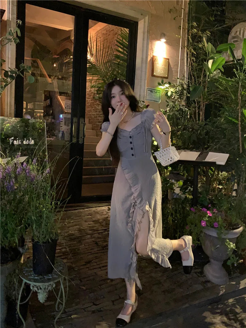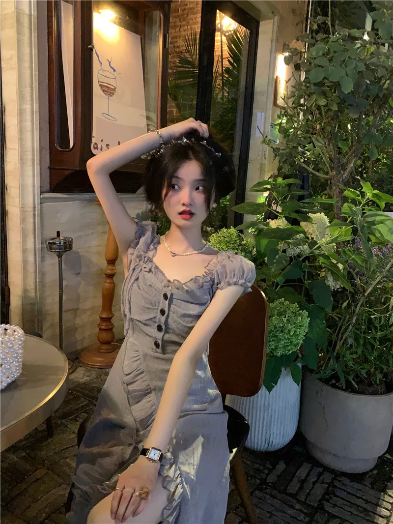 Hnewly Dress Women Sweet Streetwear Buttons Ruffles Irregular Pure Square Collar Tender Temper Fashion Autumn Ulzzang Literary Unique