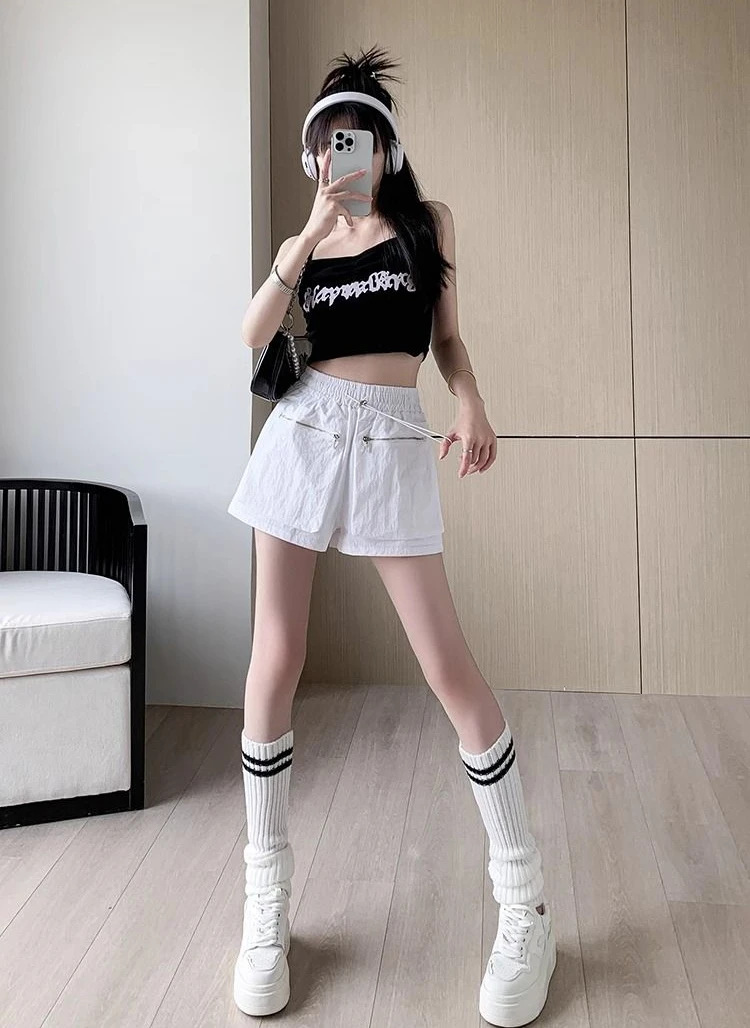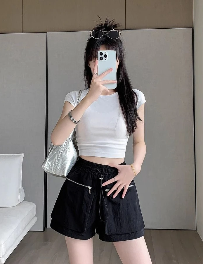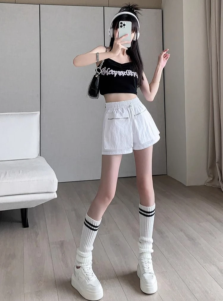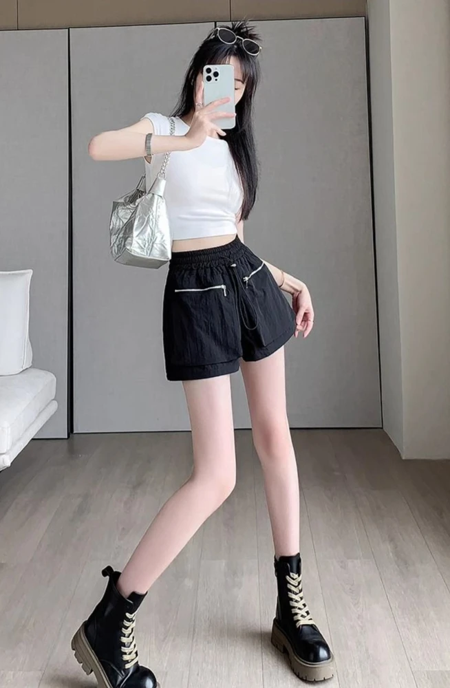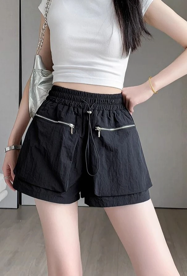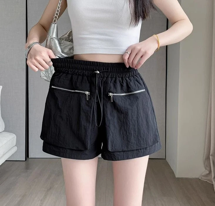 Hnewly Elastic Waist Casual Wide Women's Cargo Shorts Flowy Trend 2025 Korean Style XL Summer Zippered Pocket Baggy Female Short Pants