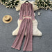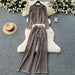 Hnewly Elegant Knitted Set for Women's High End Versatile Round Neck Striped Knitted Cardigan+High Waist Casual Wide Leg Pants 2PCS