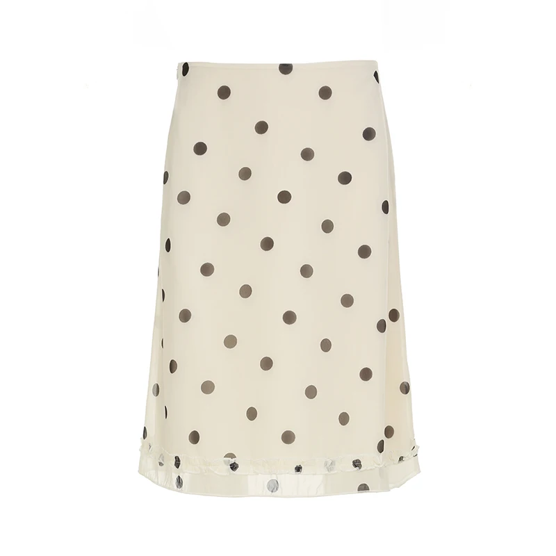 Hnewly Elegant Ladies Polka Dot Midi Skirts Kawaii Ruched Stitching Straight Skirts for Women Summer Streetwear Casual Clothing
