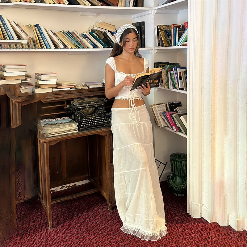Hnewly Elegant Off Shoulder Square-neck Sleeveless Crop Tops And Loose Long Skirts 2025 Spring Summer Women Beach Party Suits