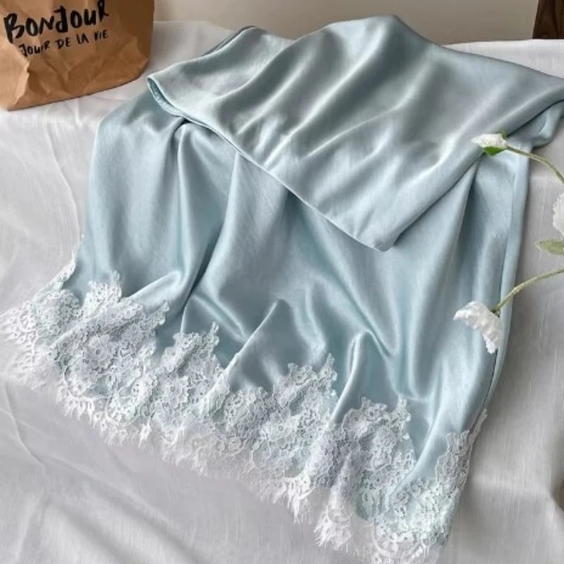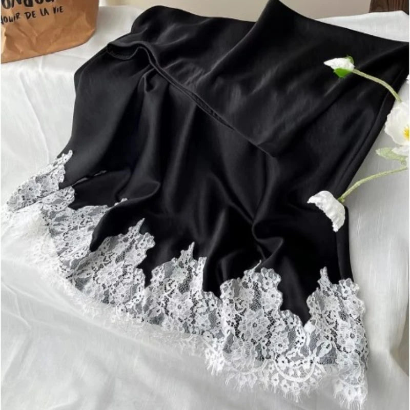 Hnewly Elegant Satin Skirt Women French Style Lace Patchwork Long Skirts Fairycore Fashion Slim Up A-line Skirts Aesthetics