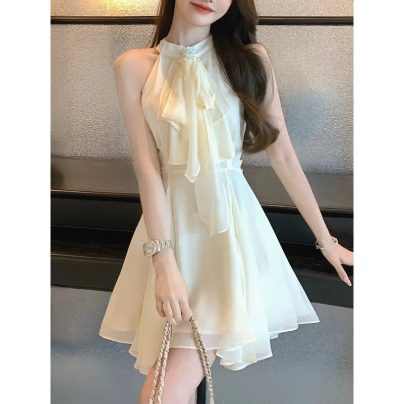 Hnewly Elegant Sleeveless Y2k Mini Dress Women Beach Style Office Lady One Piece Dress Korean Fashion 2000s Vintage Clothing Even Party