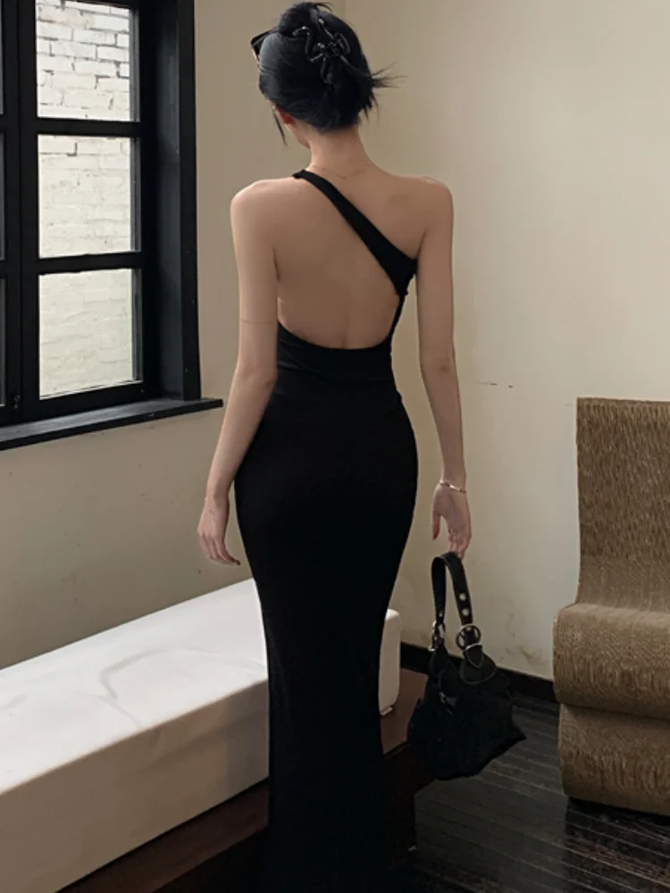 Hnewly Elegant Solid Color Princess Evening Dresses French Romantic Black Hip Wrap Graduation Dress Korean Summer Strap Wedding Dress