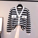 Hnewly Elegant Striped Knit Cardigan Sweater Spring Autumn New V-neck Long Sleeved Jacket Women's Fashion Gold Button Coat Top