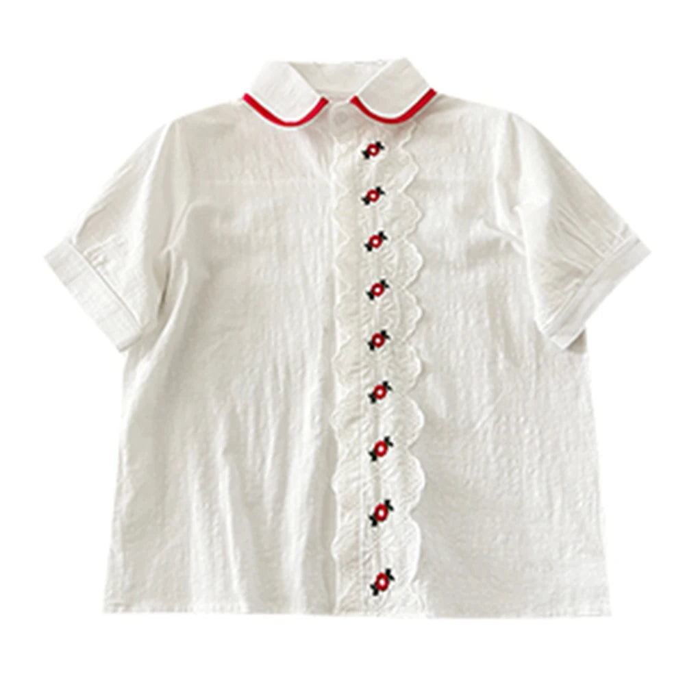 Hnewly Embroidered Floral Lace Trim Shirt Women's Summer Casual Doll Collar Single-Breasted Tops Short Sleeves Versatile Thin Cardigan
