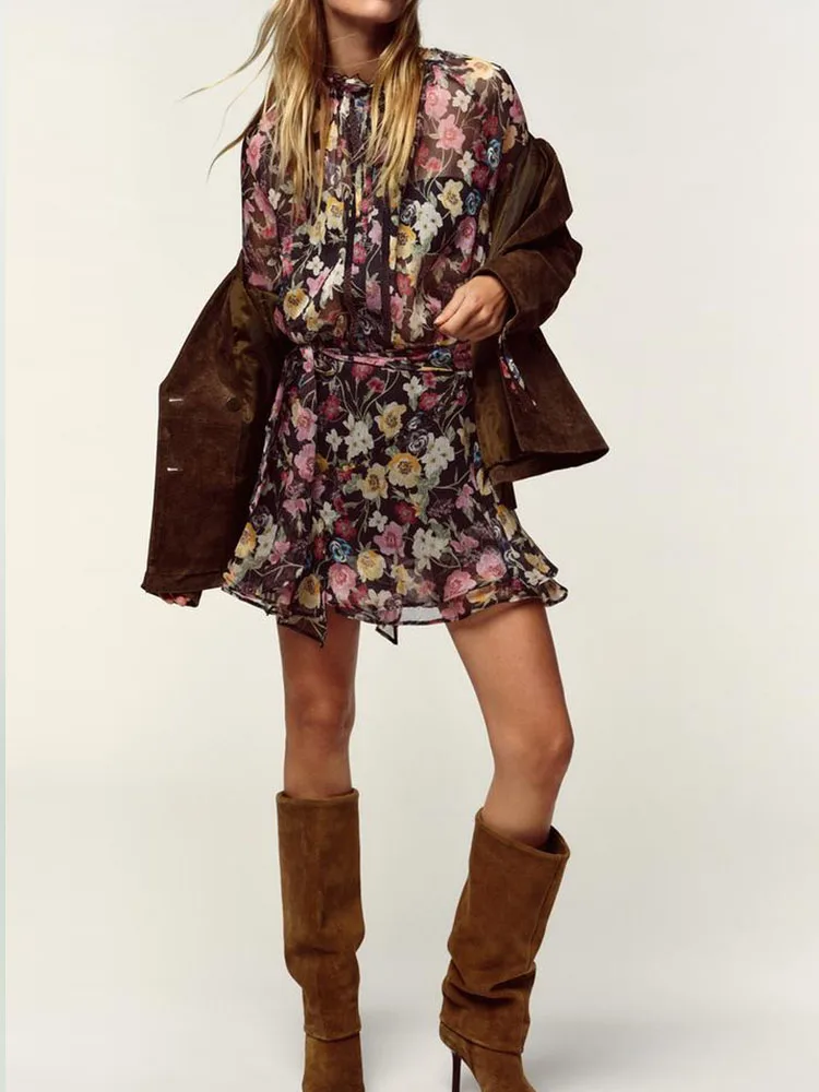 Hnewly Faionable Floral Print Dr Women's Commute Sle Long Sve Slim Fit Daily Wear Z Autumn New Arrival