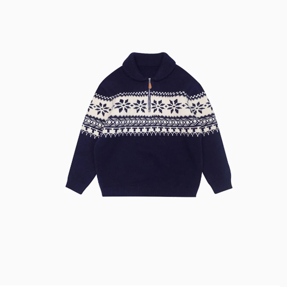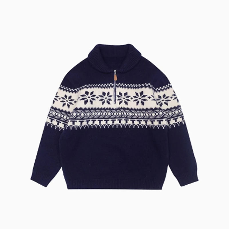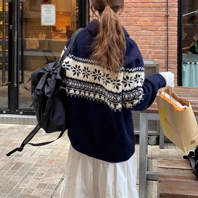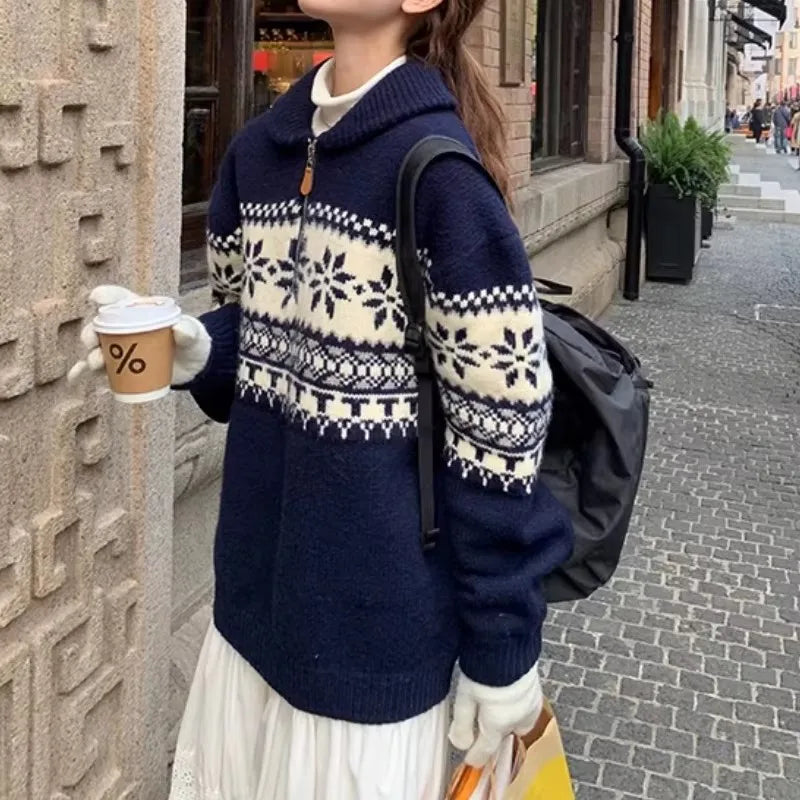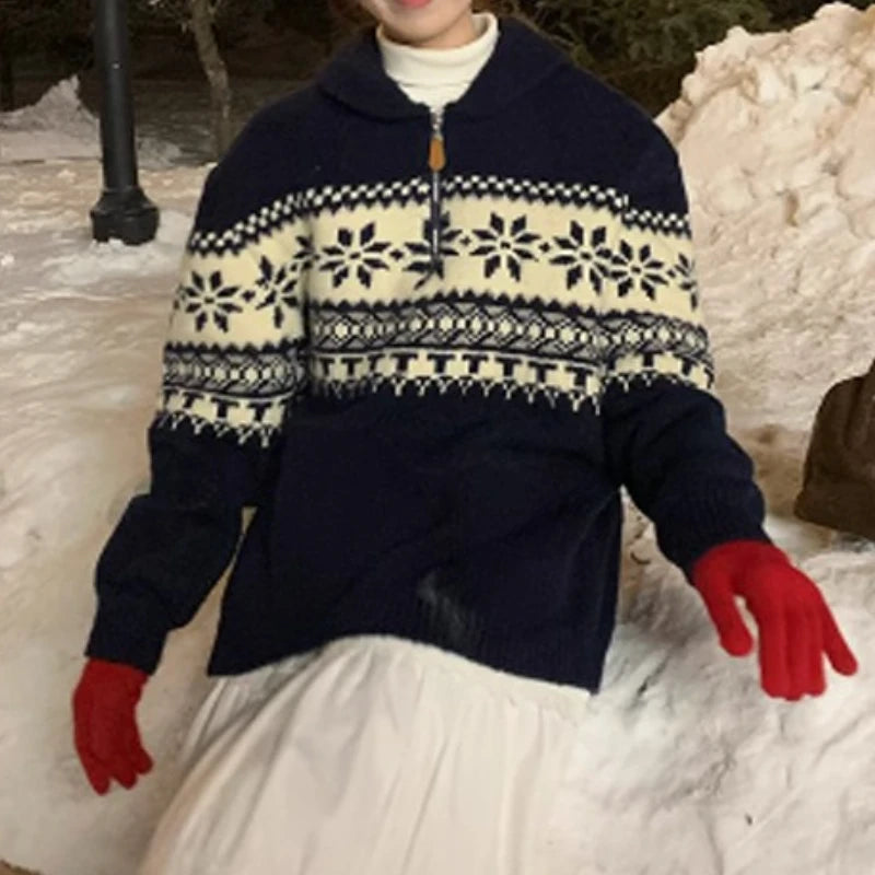Hnewly Fair Isle Sweater for Women Cozy Knitwear Polo Collar Quarter Zip Knitted Pullover Jumper Ladies Autumn Winter Vintage Outfit