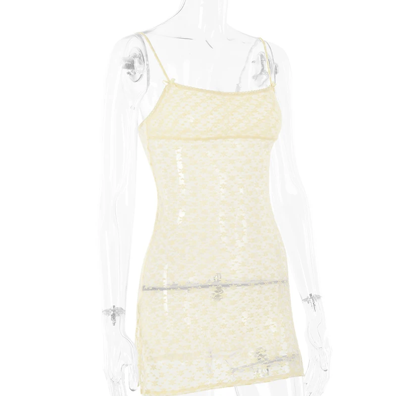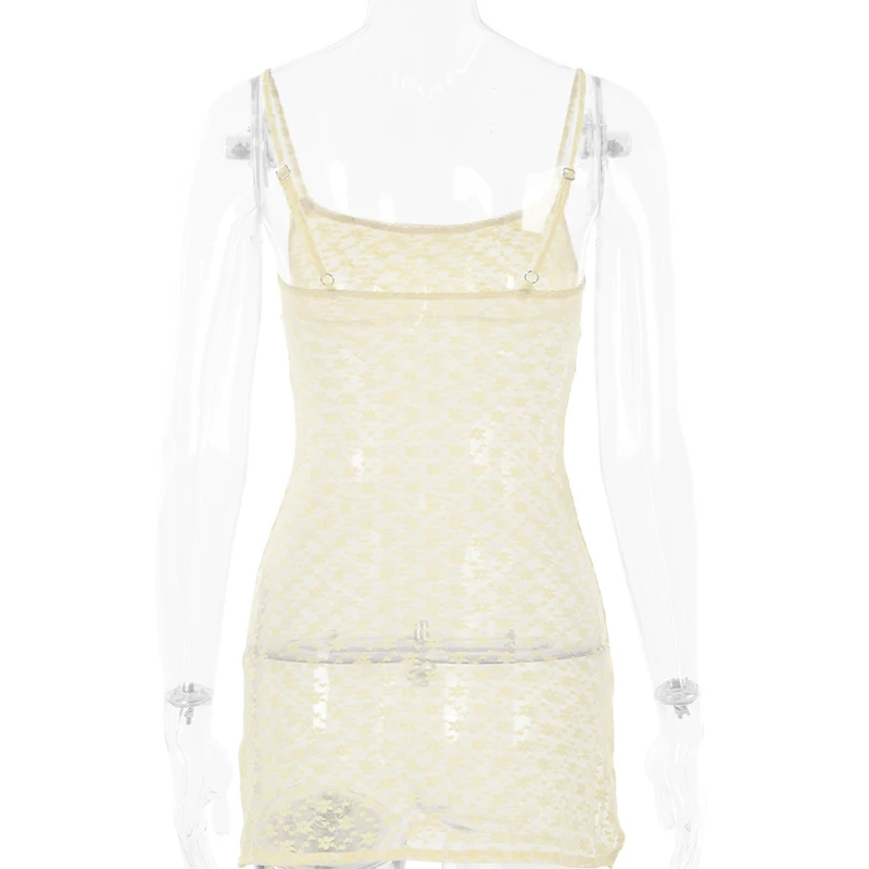 Hnewly Fairycore Sexy Mesh Floral Spaghetti Strap Mini Tank Dress New Holiday Beach Off-shoulder Backless Slim Fit Casual Sundress
