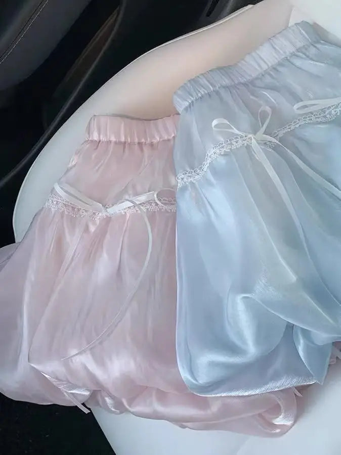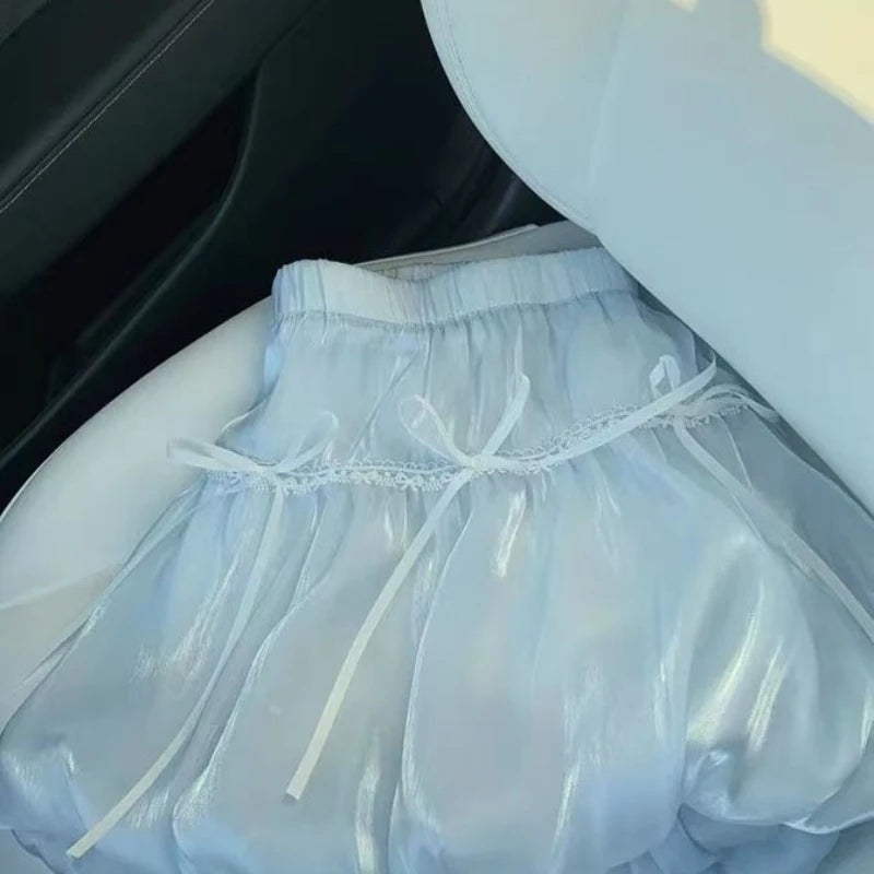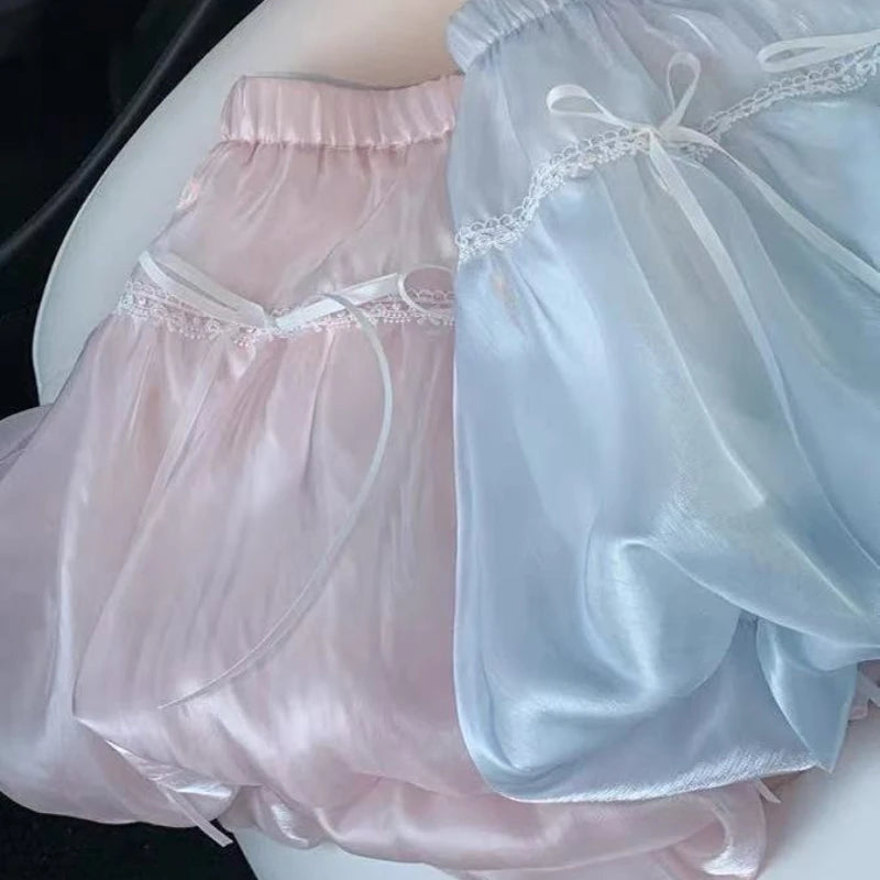 Hnewly Fairycore Sweet Mini Skirt Women Pink Y2k Coquette Elegant Bow Short Skirts Kawaii Lace Patchwork Puffy Ruffle Skirts