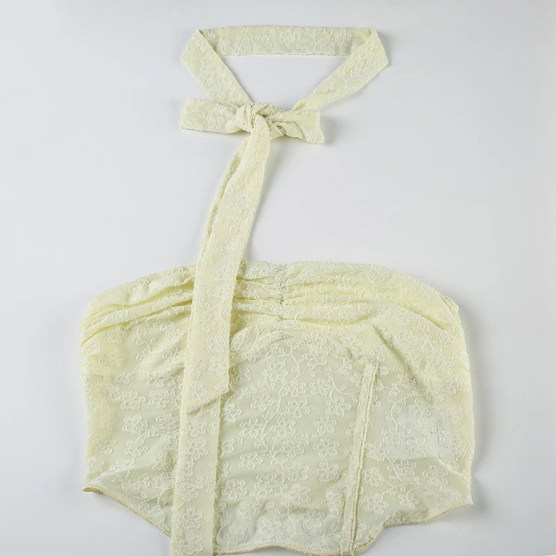 Hnewly Fashion Lace Spliced Slim Fit Women Sexy Strap Tops Summer Sheer Chic Ruched Backless Trendy Tank