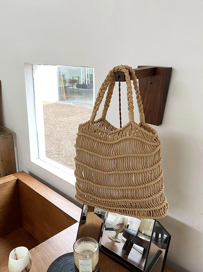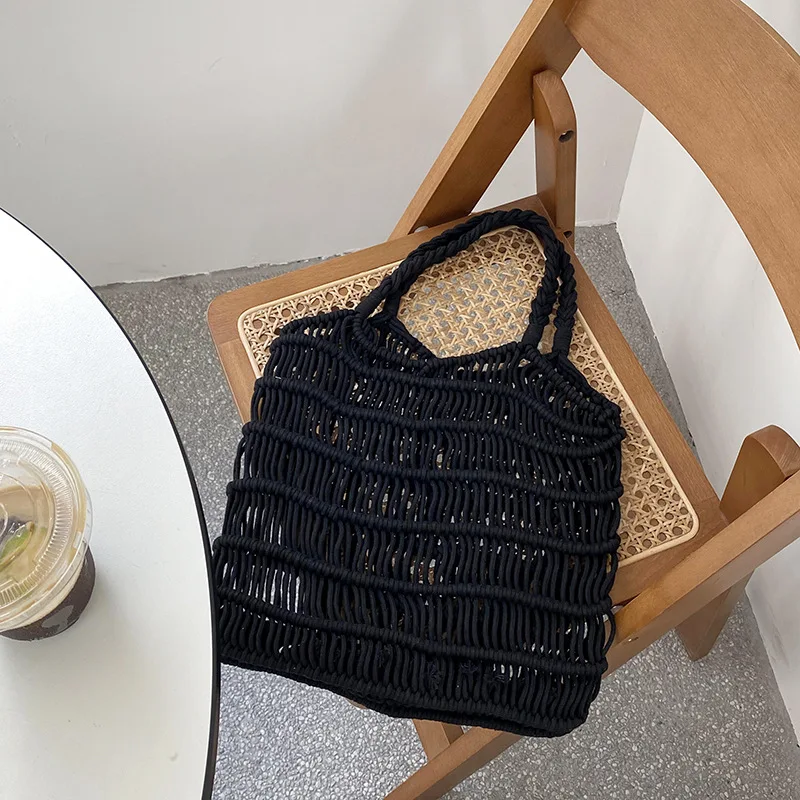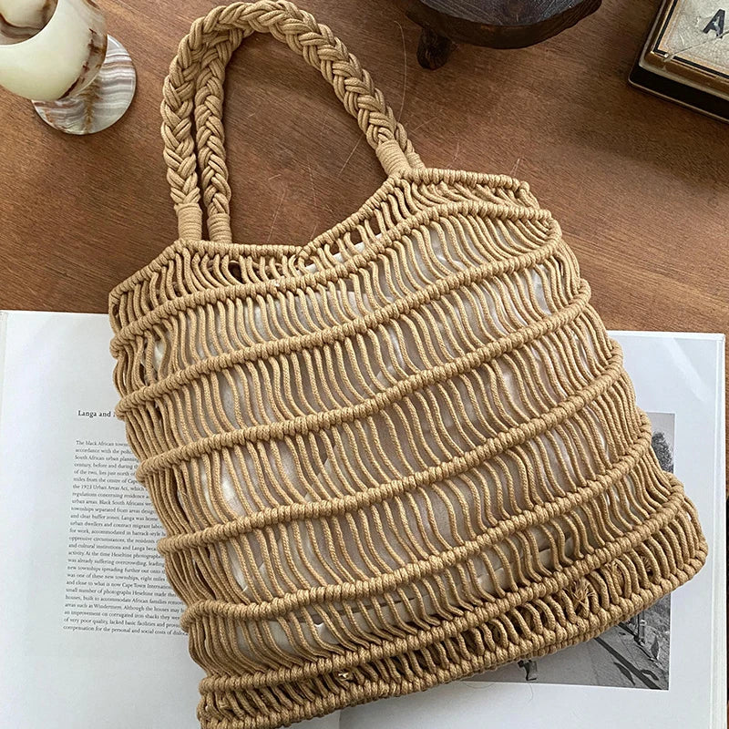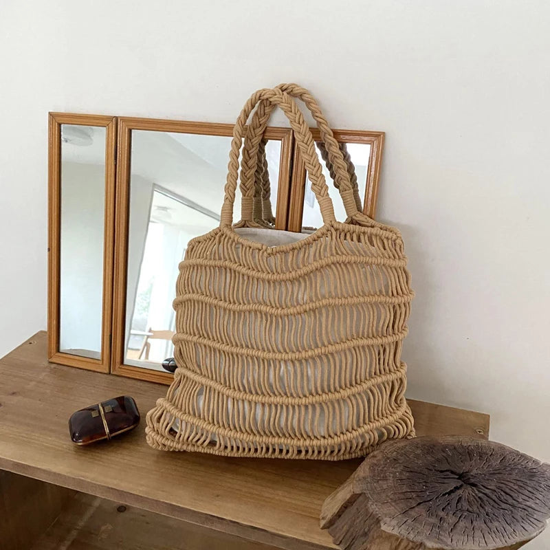 Hnewly Fashion Mesh Beach Bags For Women Summer Cotton Woven Shoulder Purse Handbag Beach Tote Bag Vacation
