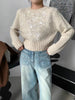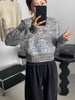 Hnewly Fashion Sequin Short Sweater for Women's Spring Autumn New Soft Knitted Top Pullover Casual Round Neck Loose All-matched Top