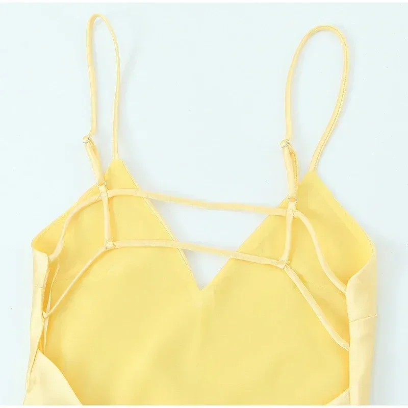 Model Number: 2025 Women Sexy Backless Yellow Stain Dress