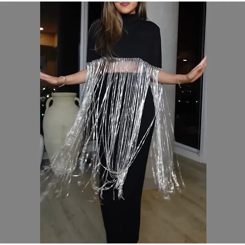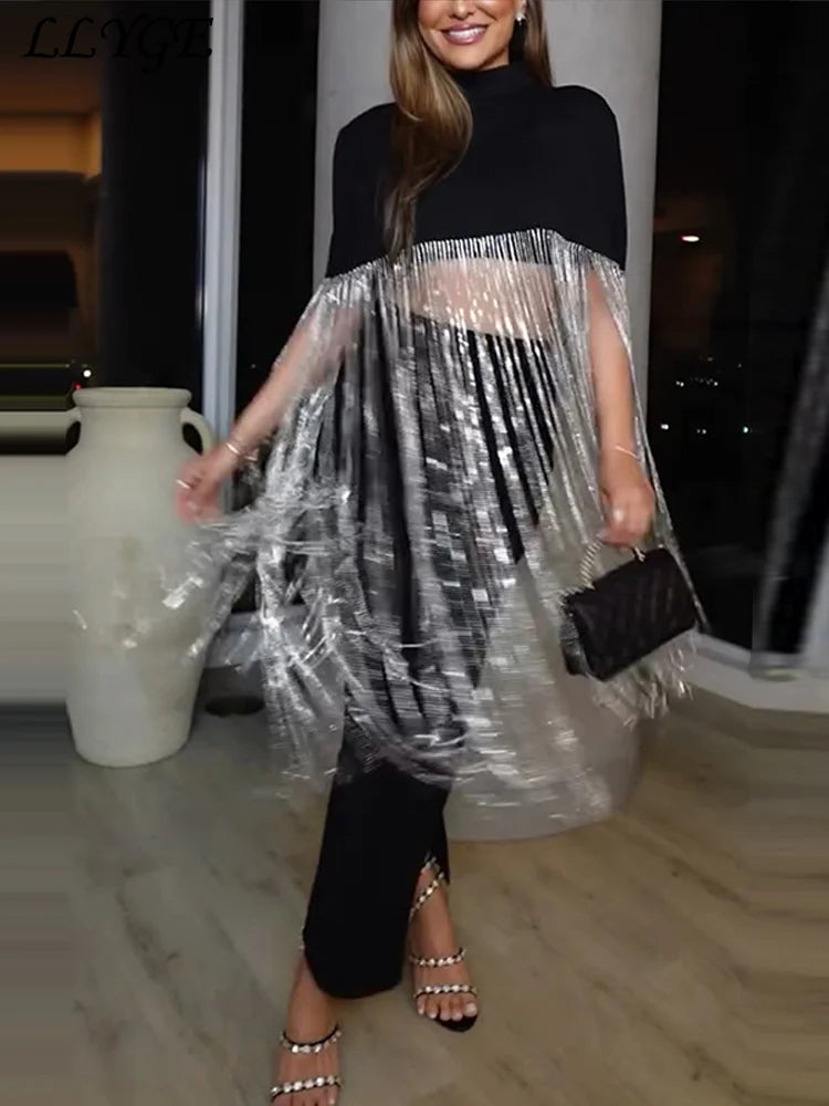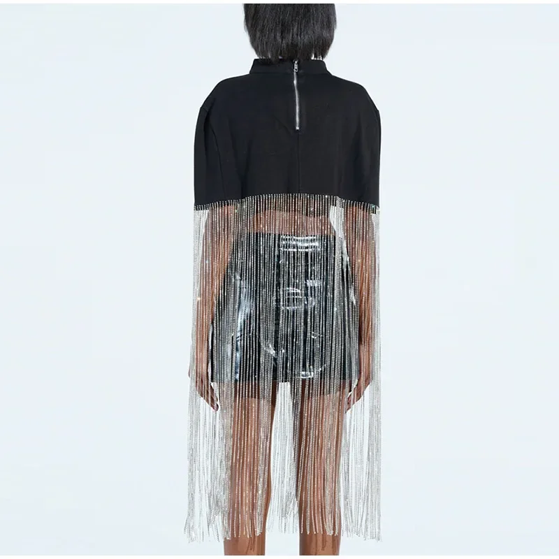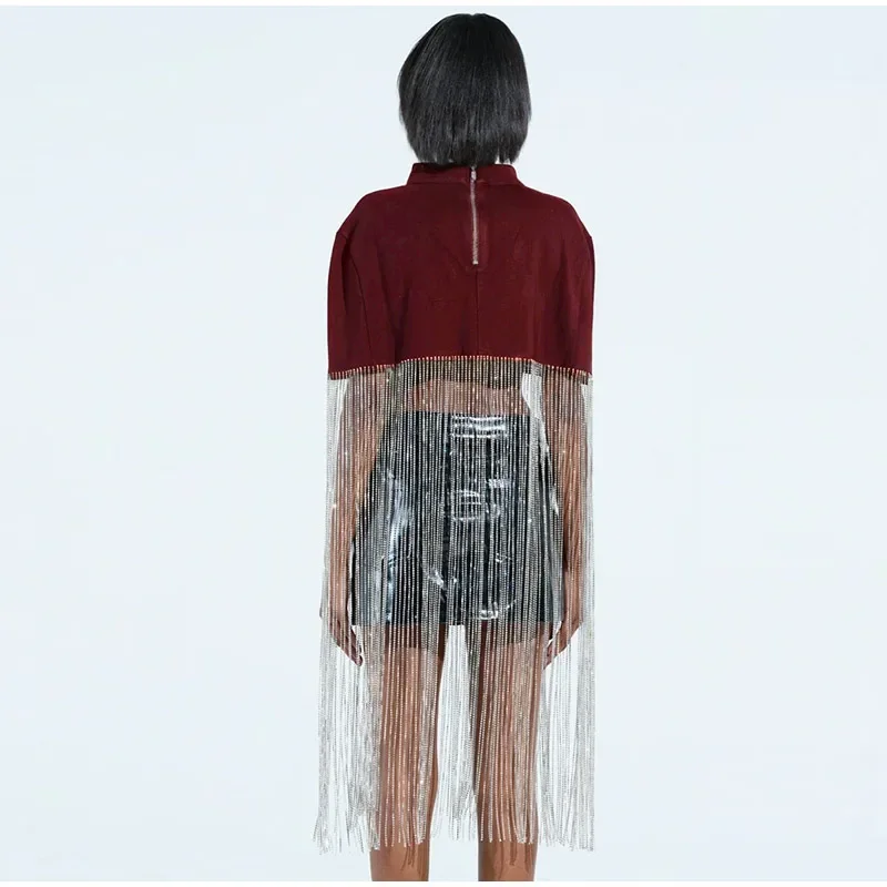 Hnewly Fashion Tassel Patchwork Cropped Shirts Women Half High Collar Zipper Short Sleeve Blouses Spring Lady Shiny Party Tops