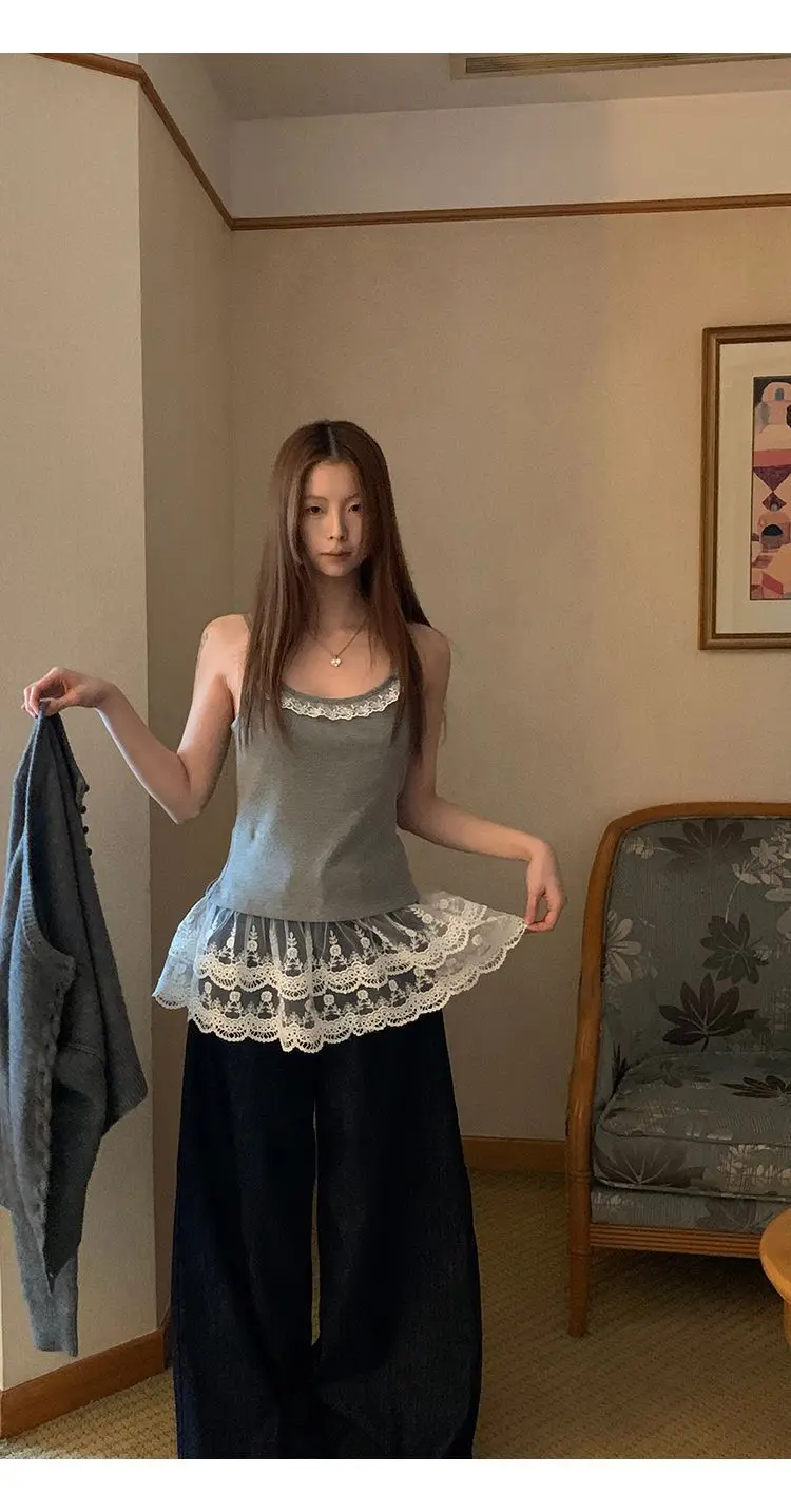 Hnewly Fashion White Lace Splice Sleeveless Camisole Tank Top Spring Autumn New Design Women's Cami Vest