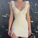 Hnewly Fashion Women Backless Sleeveless V-Neck Dress Elegant Ruffle Split Mini Summer 2024 Slim Party Clubwear Sexy Vestidos