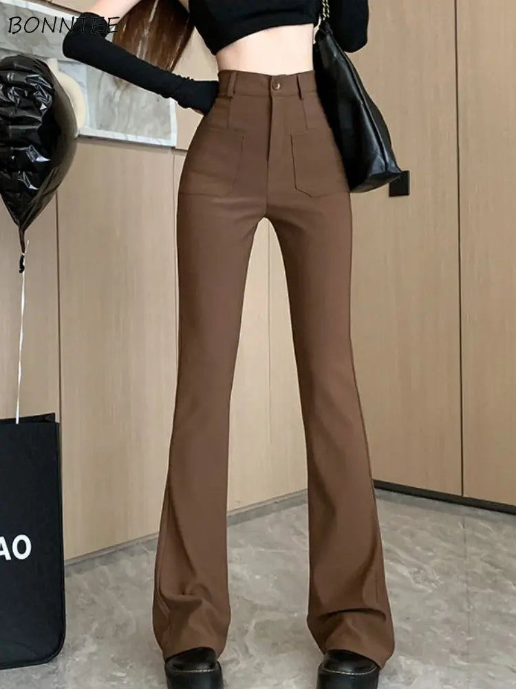 Hnewly Flare Pants Women Slim Casual Sexy Streetwear Basic Solid Spring Chic All-match Korean Style Fashion Soft Ins High Waist Females