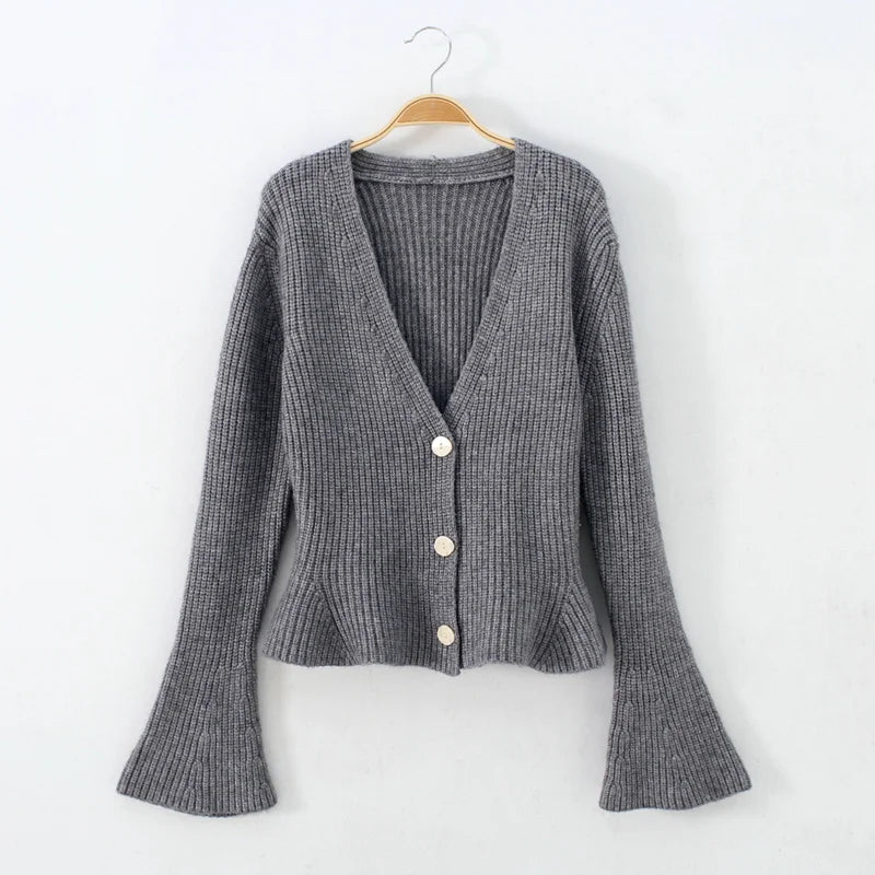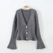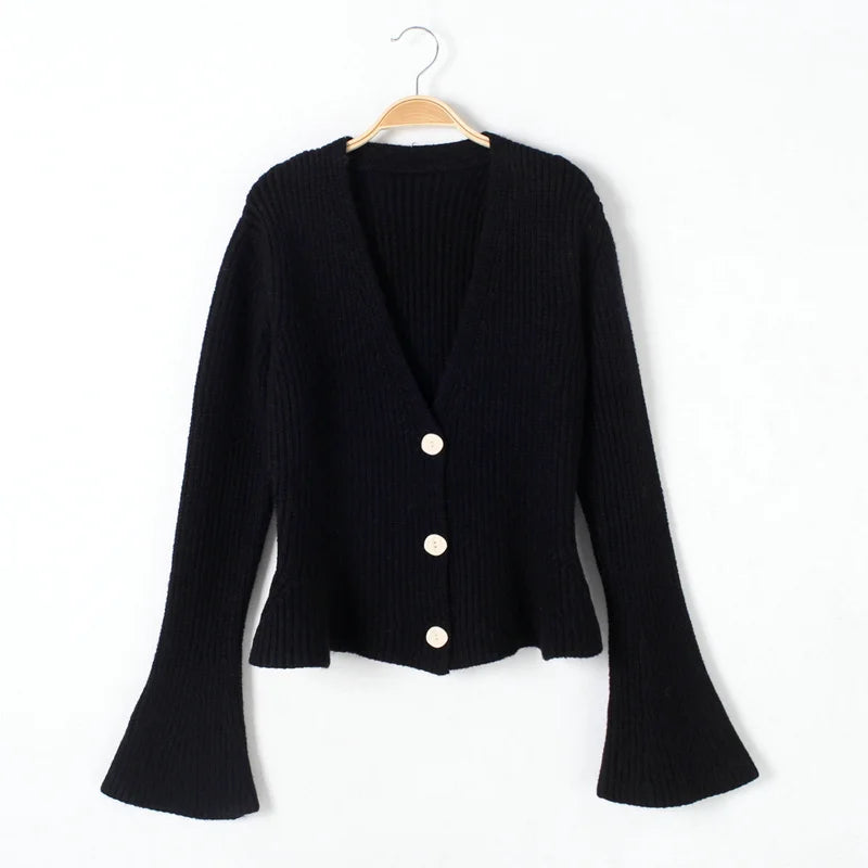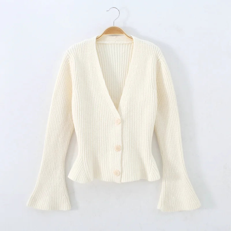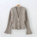 Hnewly Flared Sleeve Cardigan for Women Ruffled Hem Rib Knit Long Sleeve V-Neck Button Up Sweater Jacket Autumn Winter Elegant Outfit