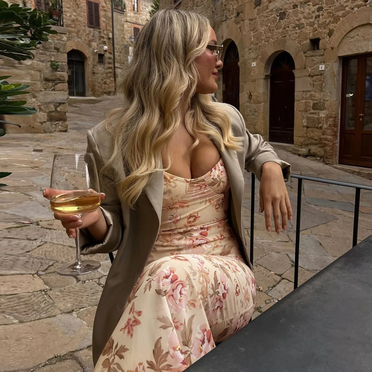 Hnewly Flower Print Slit Suspender Dress For Women Plunge Sexy Holiday Party Long Dress Female New Sleeveless Dress Vestido
