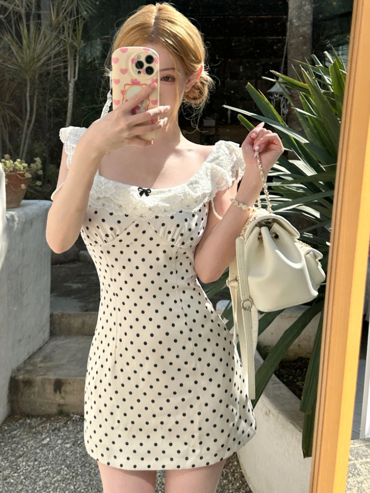 Hnewly French Elegant Mini Dress Women Casual Sleeveless 2000s Vintage Y2k Clothing One Piece Dress Korean Fashion Summer Satin Chic