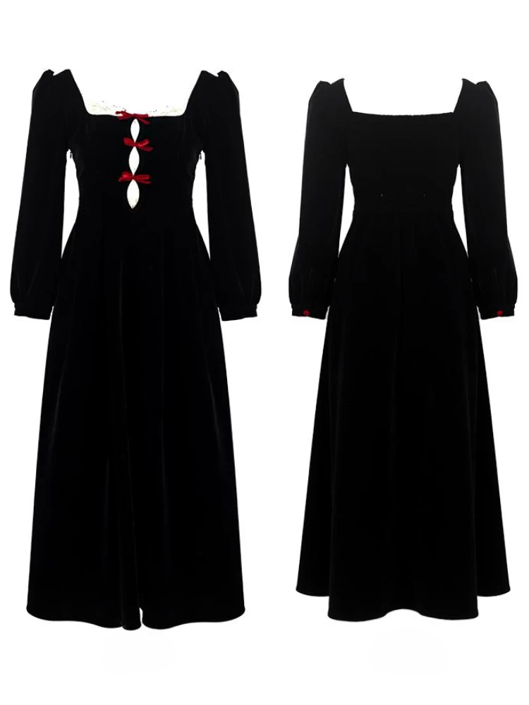 Hnewly French Elegant Retro Sweet One Piece Mini Party Dress Female Y2k Korean Fairy Lace Slim Dress Black Office Lady Autumn Winter