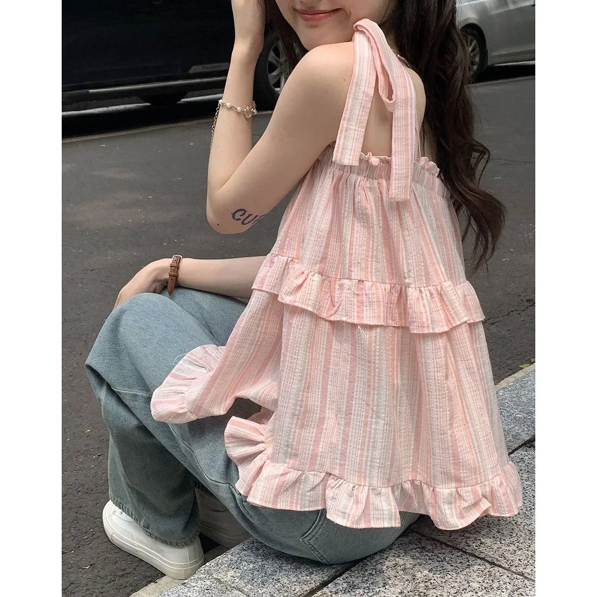 • Striped Lace-up Bow :The striped lace-up bow detail adds a unique and stylish touch to this top, making it a standout piece in any outfit.