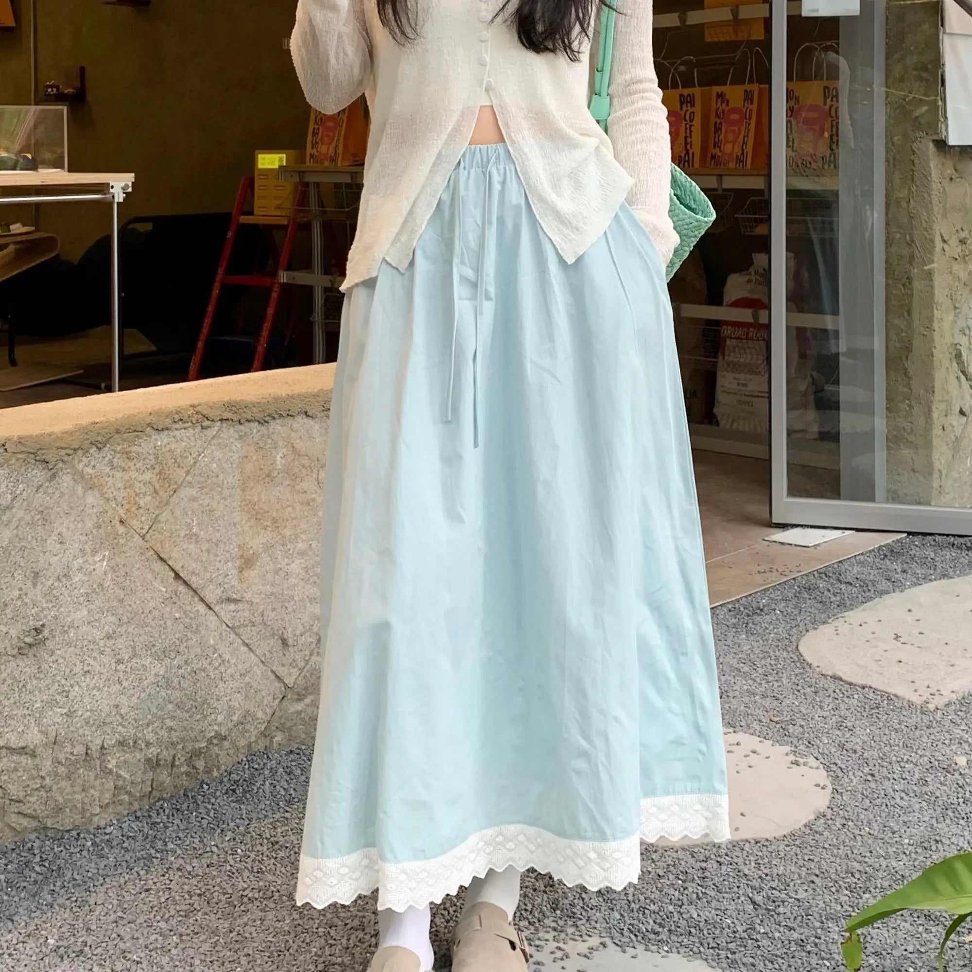 Hnewly Fresh and Fashionable Lace Lace Splicing Half Skirt Summer New Versatile Loose High Waist Long Skirt