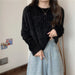 Hnewly Fuzzy Knit Top Women Pullover Long Sleeve Plain Crop Sweate Pink Fluffy Jumper for Women Teen-girl Fall Winter Y2K Outfit