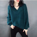 Hnewly Fuzzy Knit V-neck Sweater Women Cozy Long Sleeve Plain Jumper Pullovers Women Warm Soft Knitwear Autumn Winter Basic Outfit