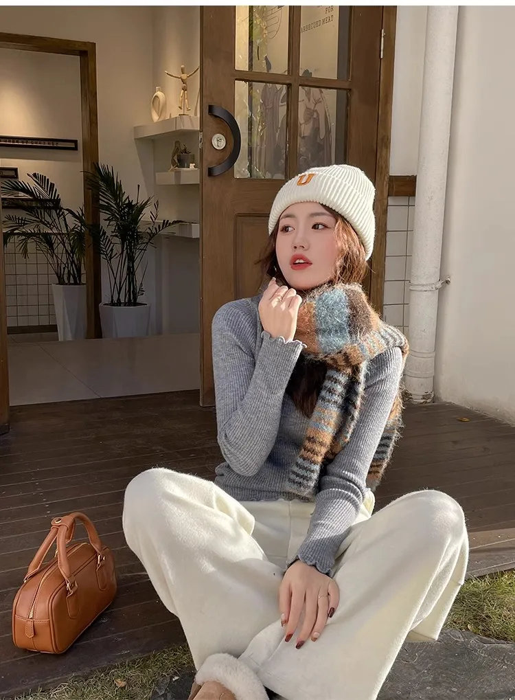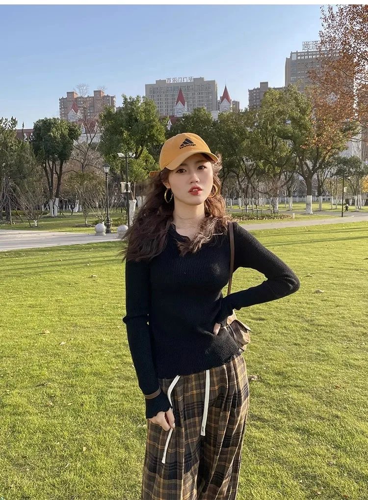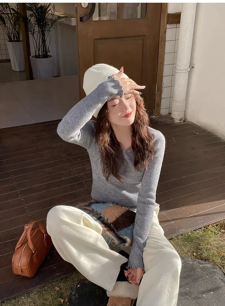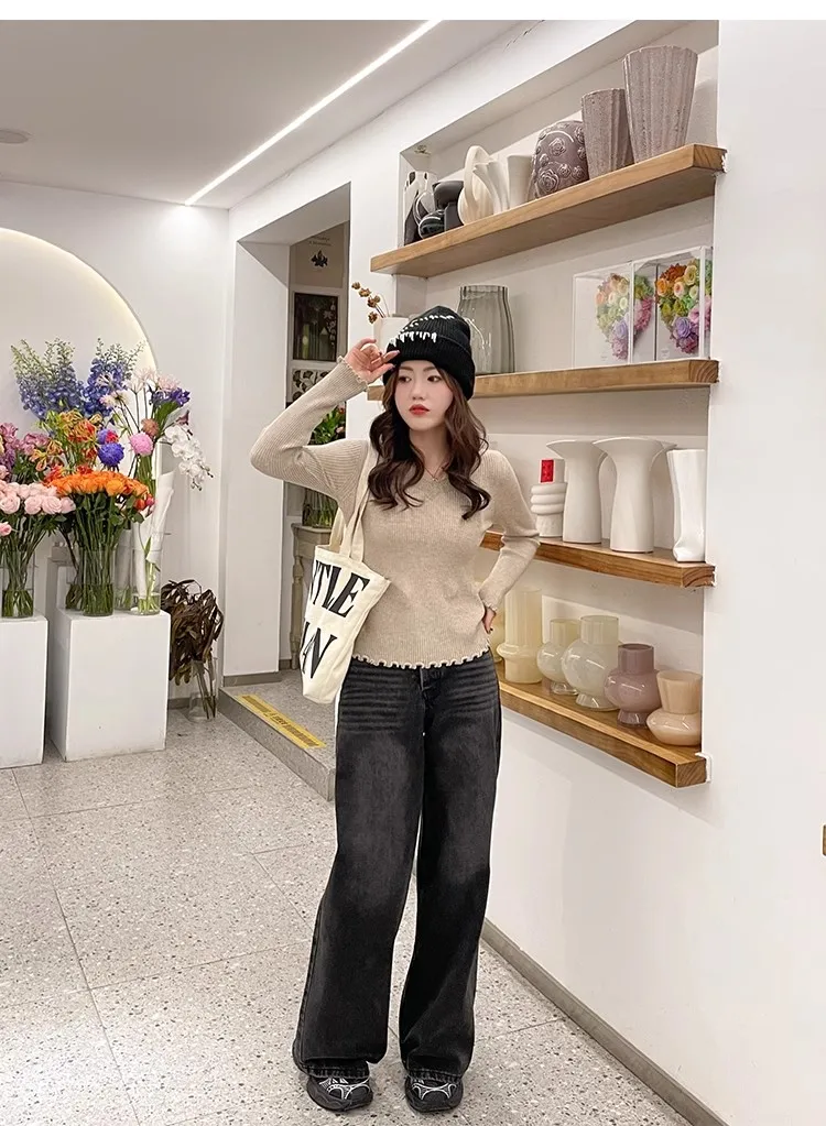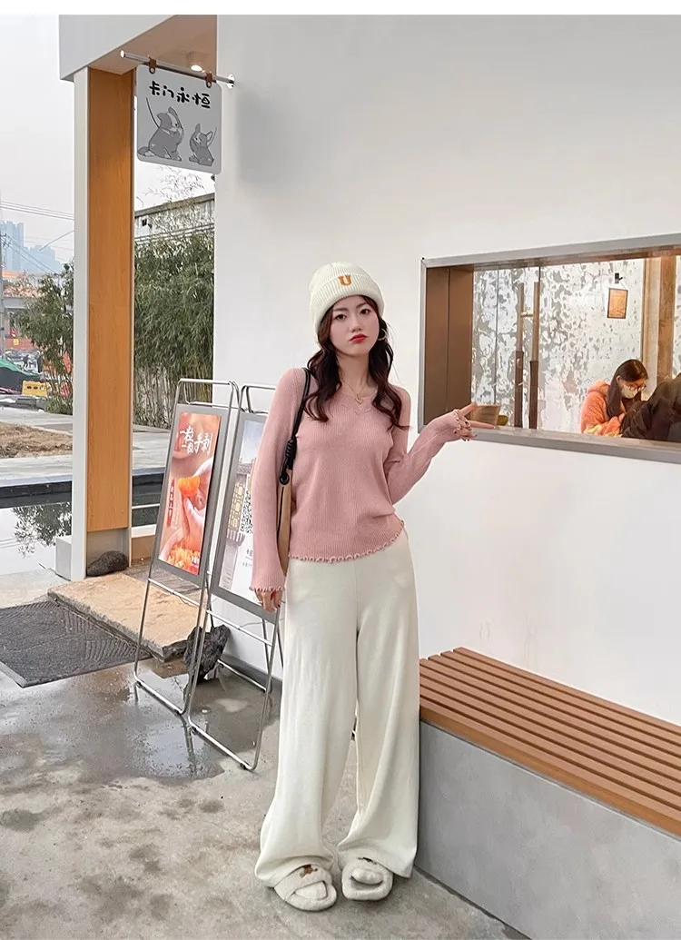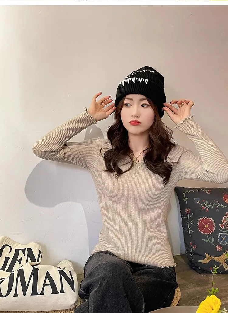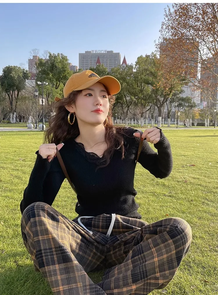 Hnewly Gentle Sweater Women Lace V-neck Basic Knitted Pullovers Comfortable All-match Streetwear Spring Fall Fashion Soft Design Sweet
