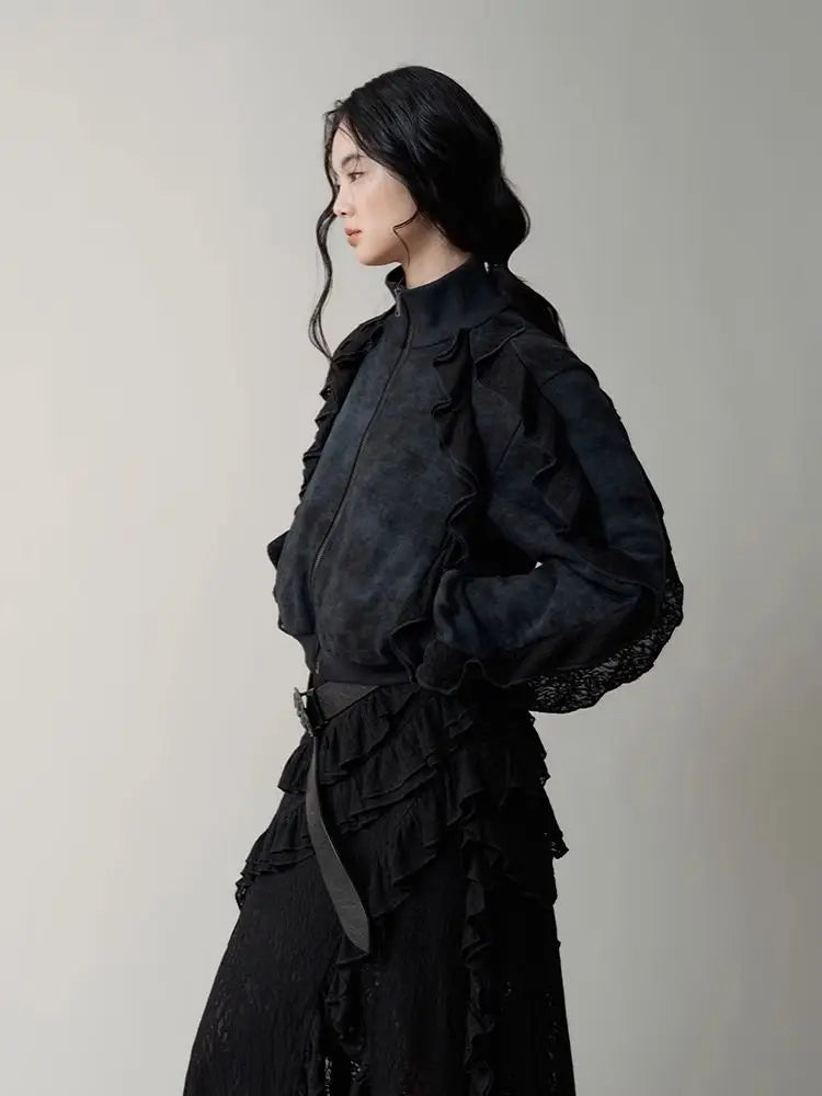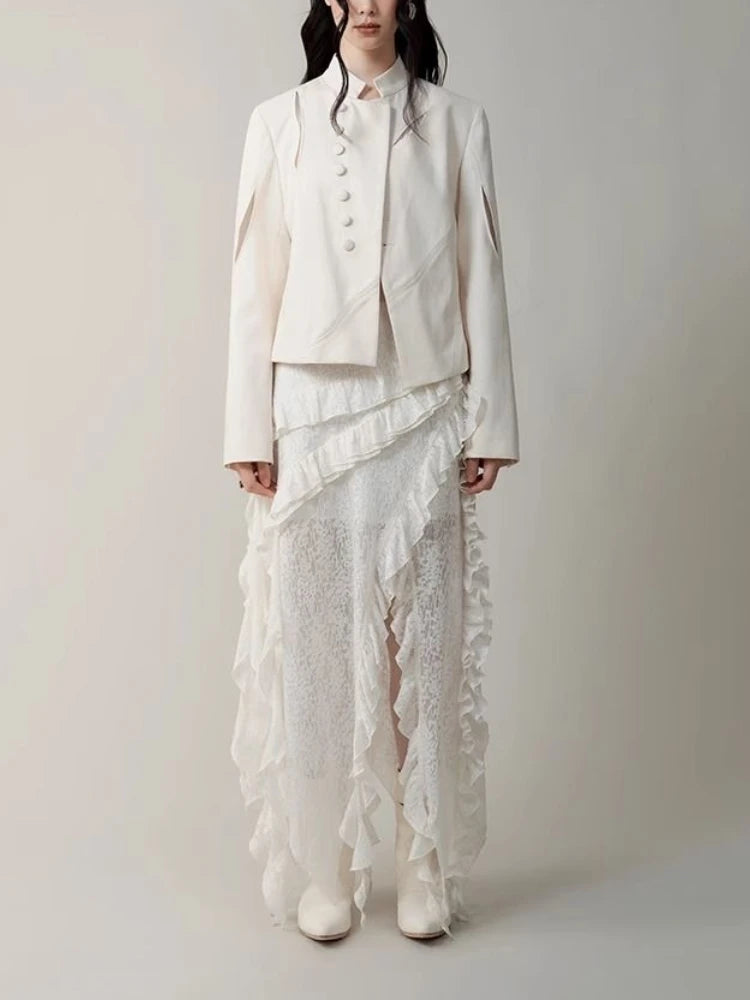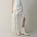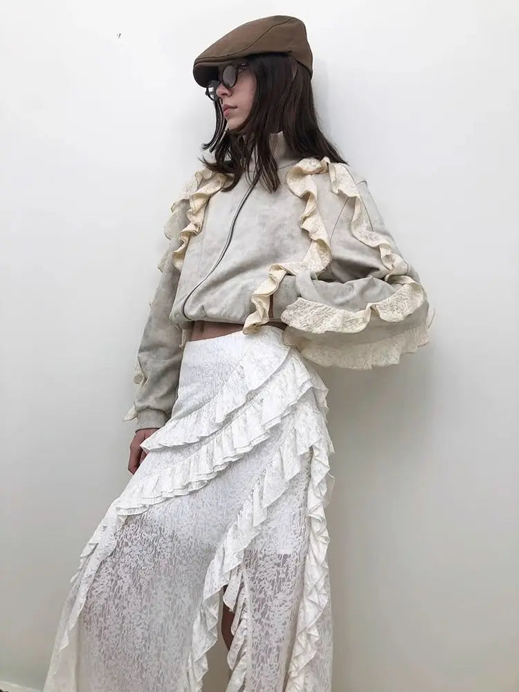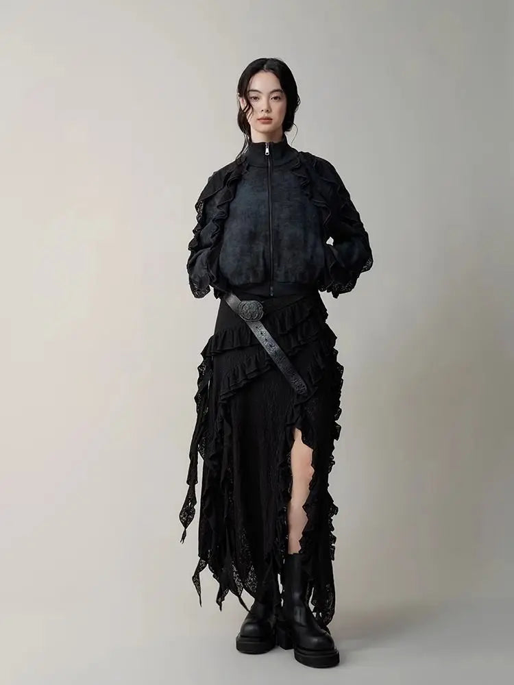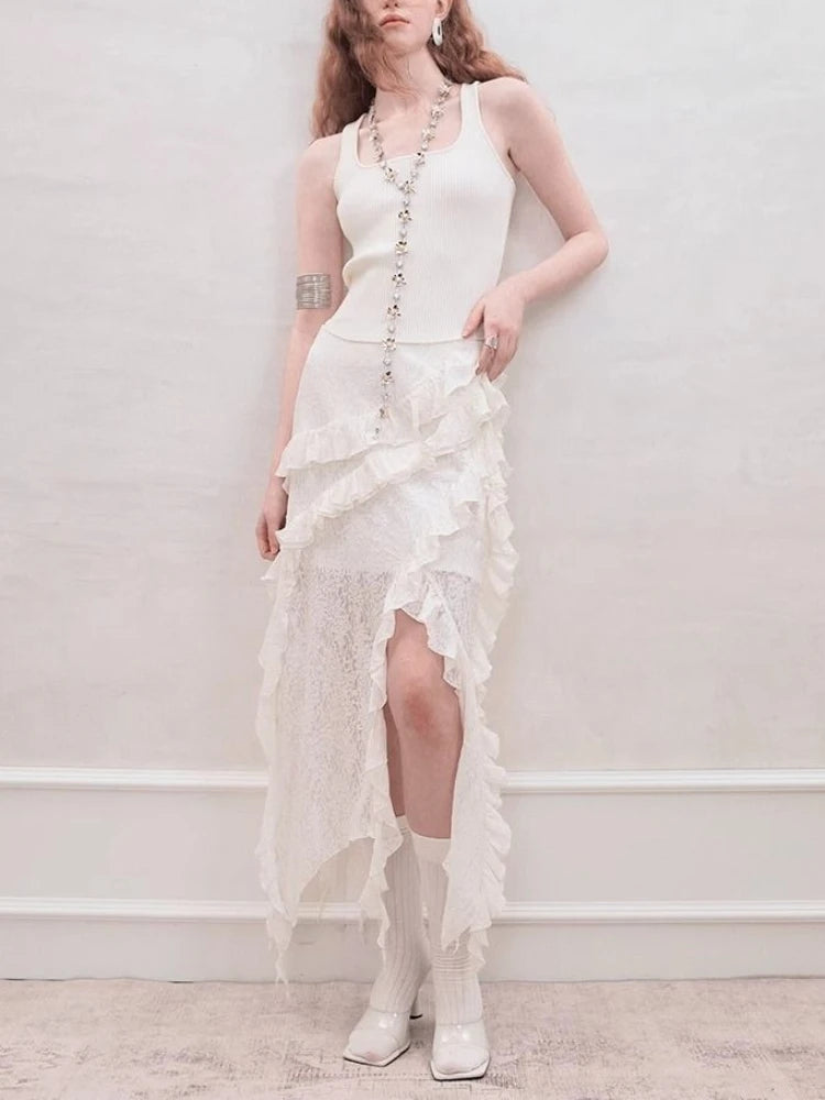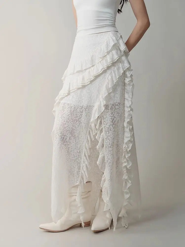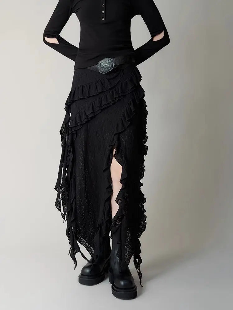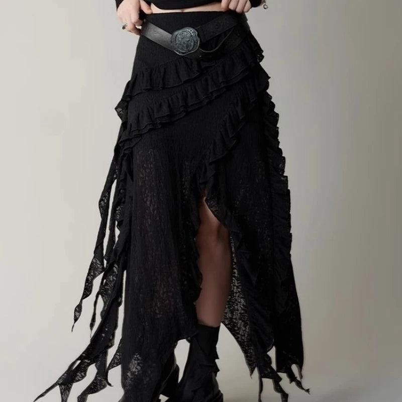 Hnewly Gothic Black Y2k Skirts Women Gyaru 2000s Lace Irregular Long White Skirt Streetwear Irregular Ruffle Skirts Aesthetic
