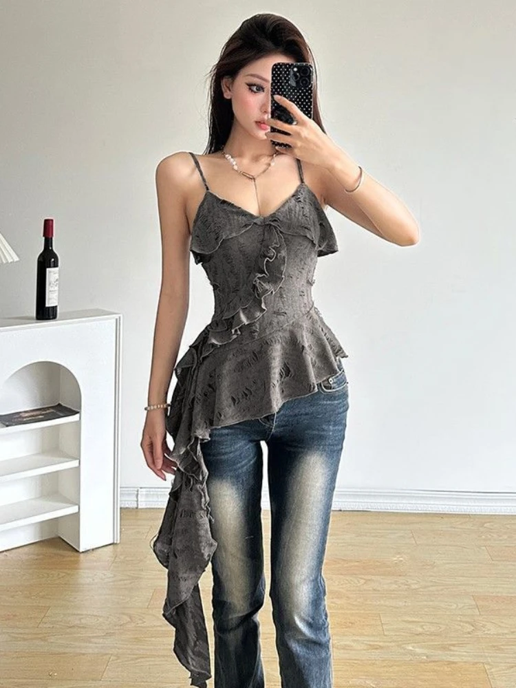 Hnewly Gothic Tank Top Y2k E-Girl Slim Fit Sleeveless Tops Vintage Harajuku Patchwork Mesh T-shirt for Women New See Through Sexy