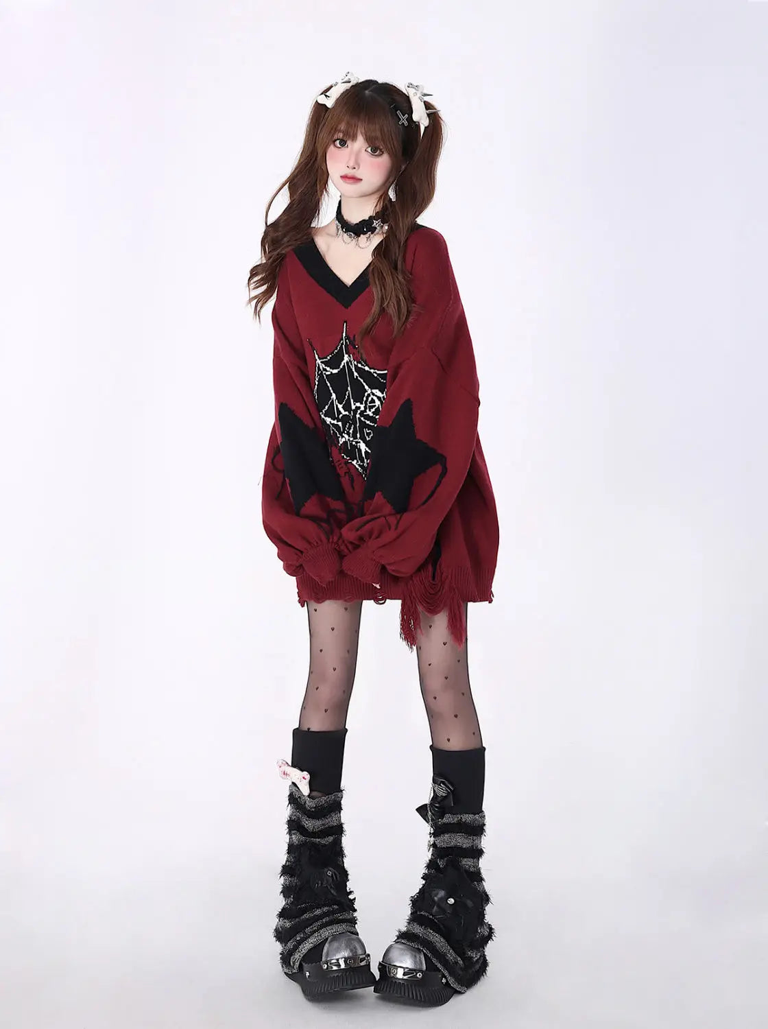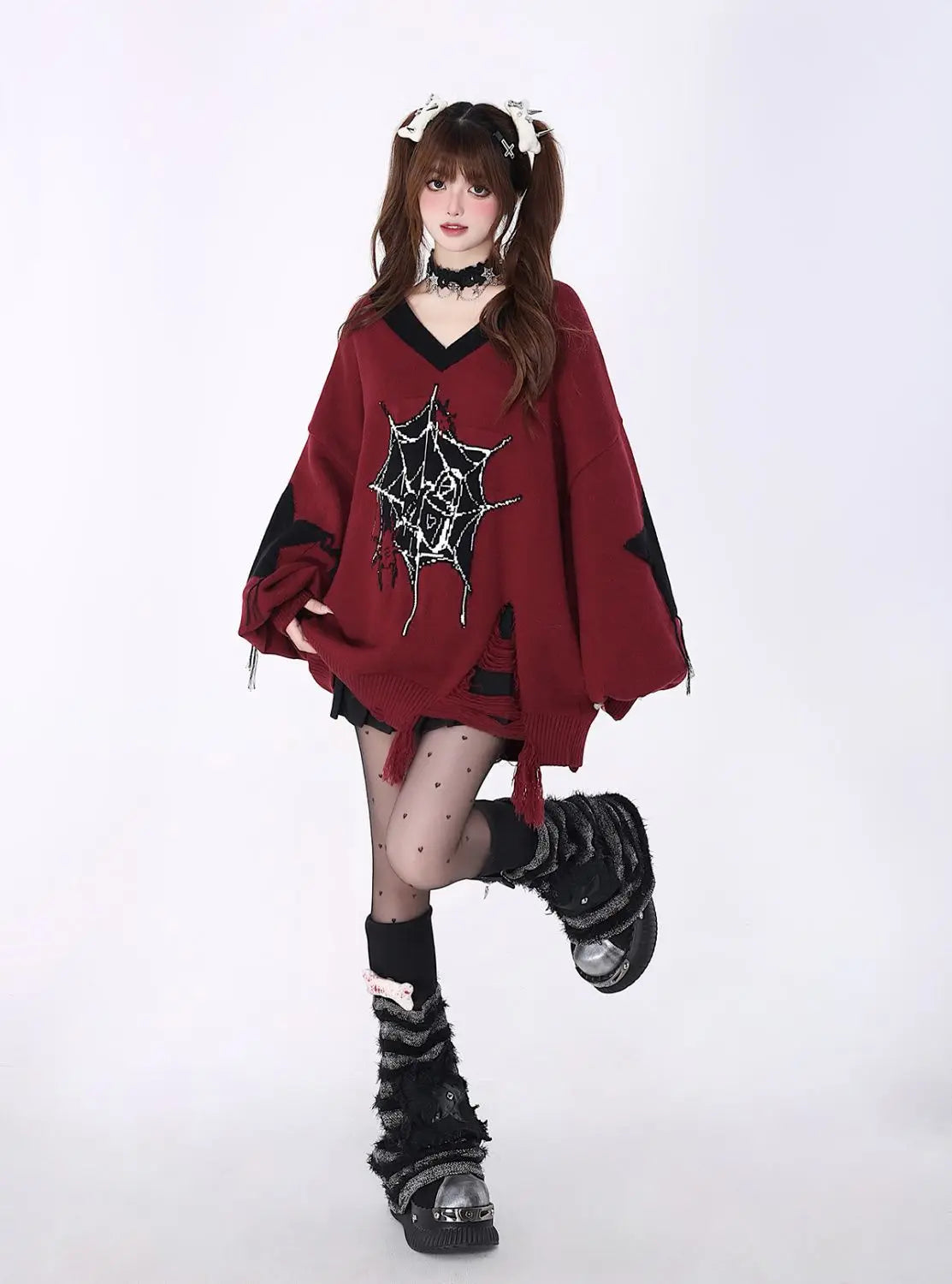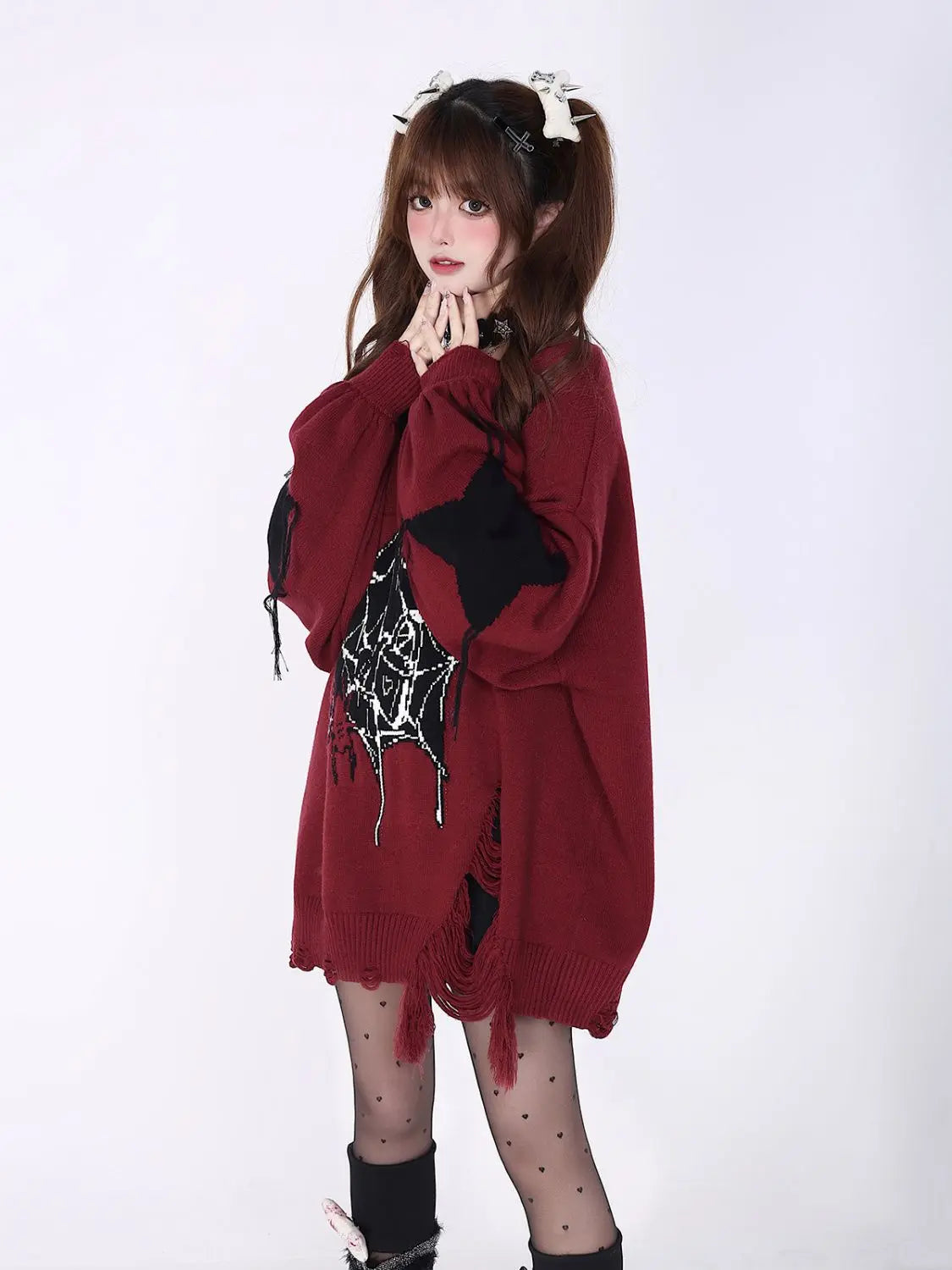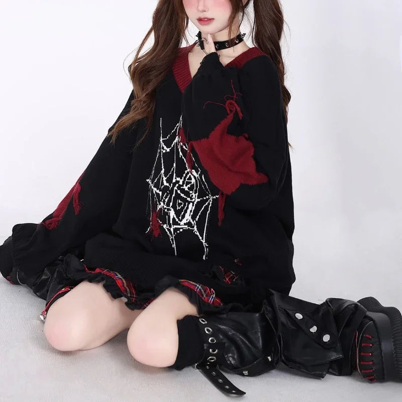 Hnewly Gothic Y2k Sweater Women Harajuku Vintage Punk Long Sleeve Knitted Pullover Grunge Fashion Streetwear Oversize Sweaters