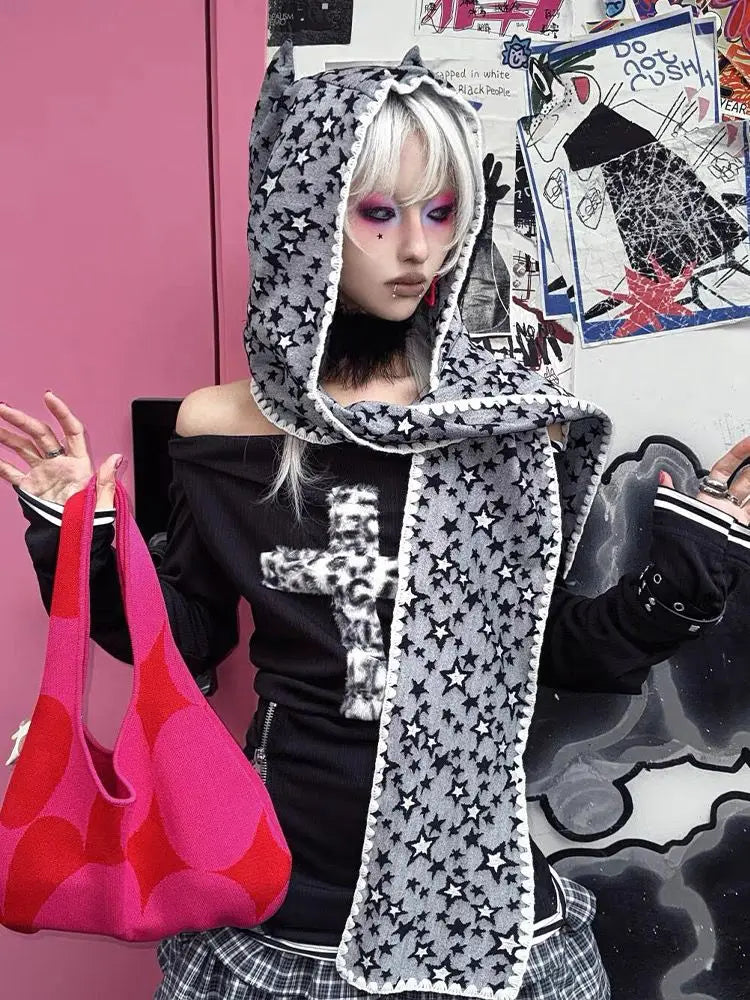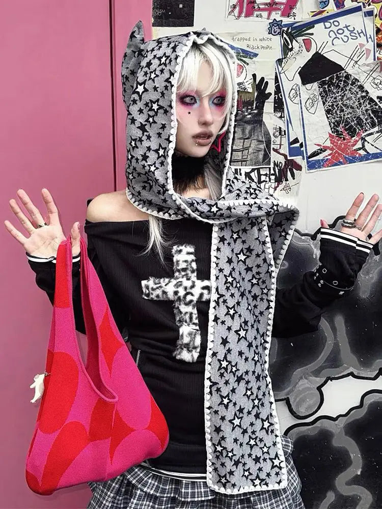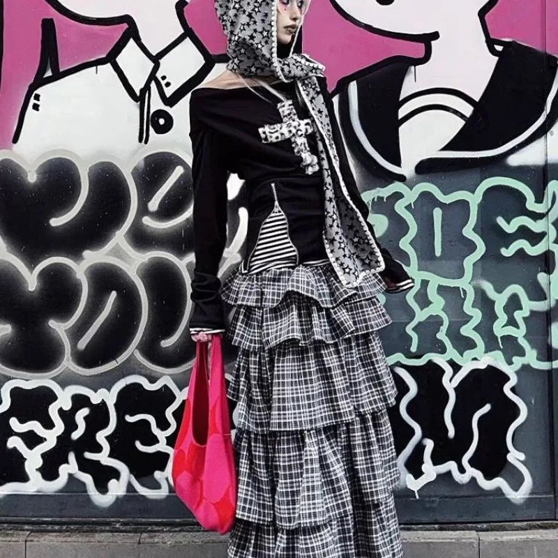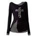 Hnewly Gothic Y2k T-shirts Women Japanese Harajuku Striped Long Sleeve Tops Grunge Vintage Punk Streetwear Fake Two Pieces