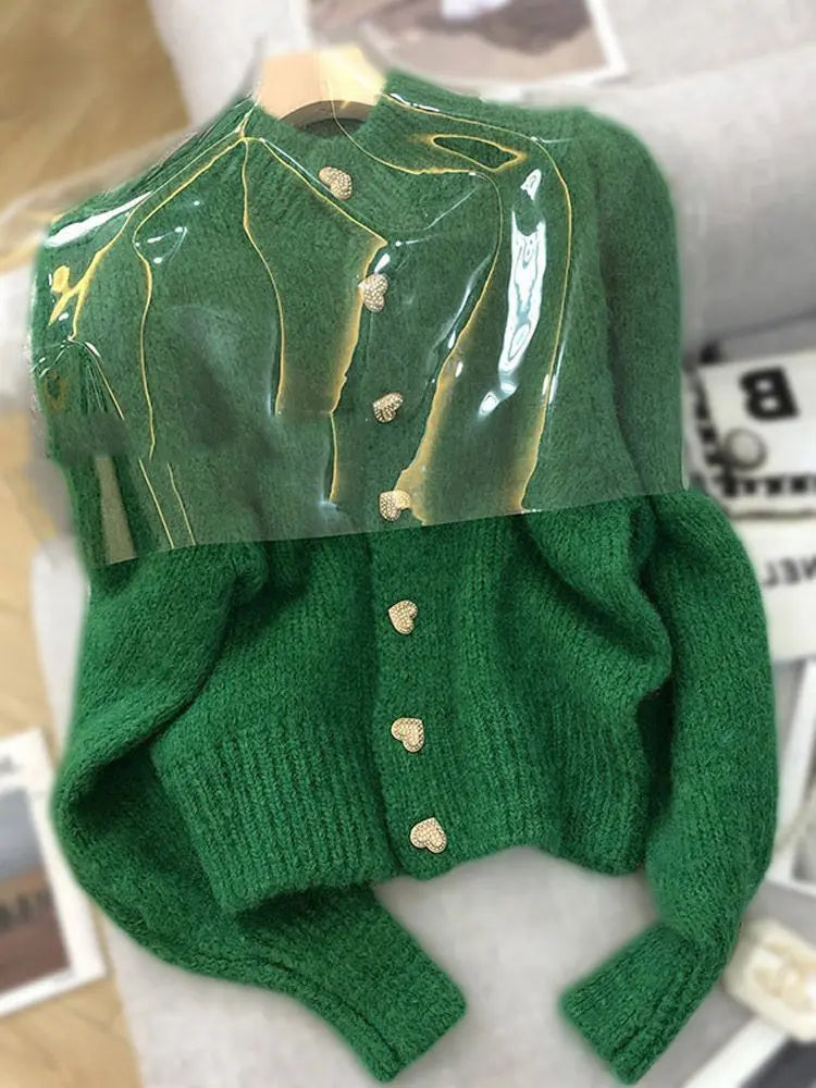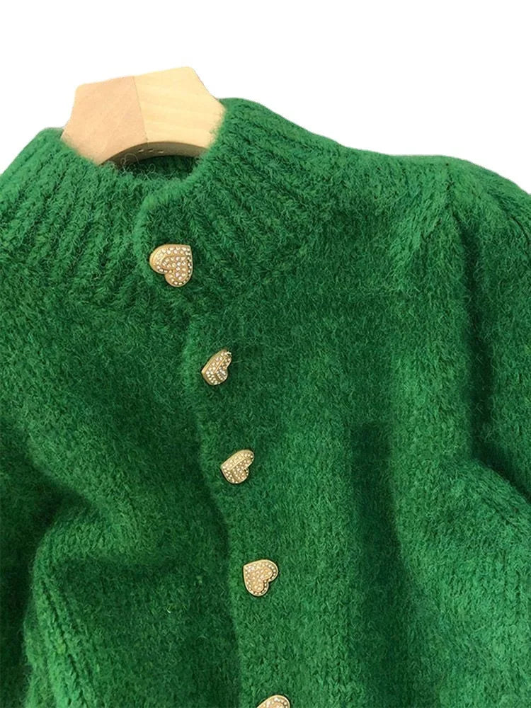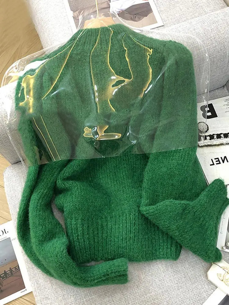 Hnewly Green Knitted Cardigan Sweaters Autumn Half High Collar Sweet Casual Korean Fashion Winter New Casual Jacket