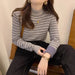 Hnewly Half High Collar Striped Sweater Velvet Bottoming Shirts for Women's Autumn Winter Thicked Warm Pullover Slim Knitting Top