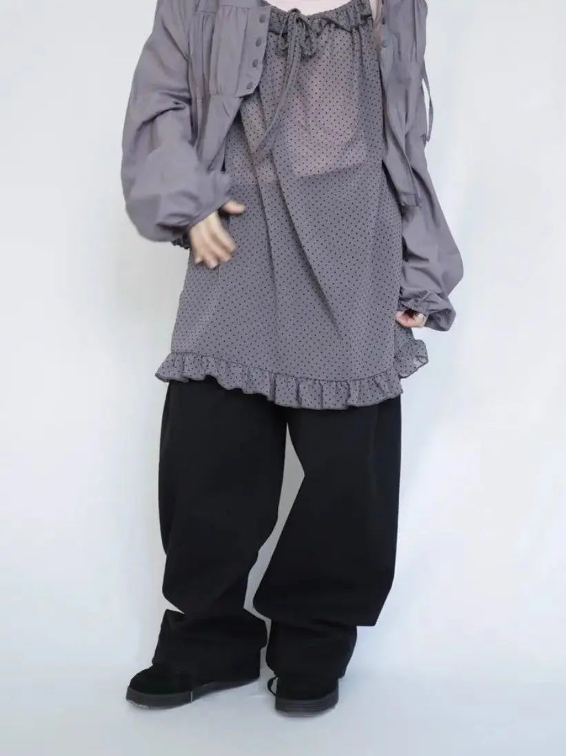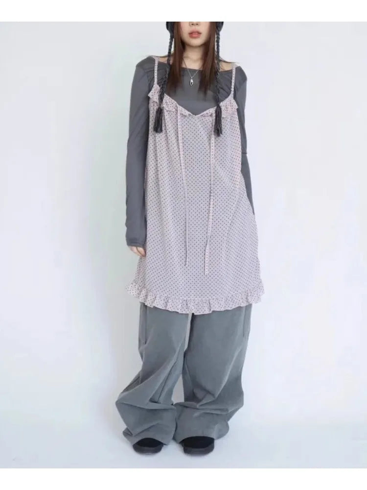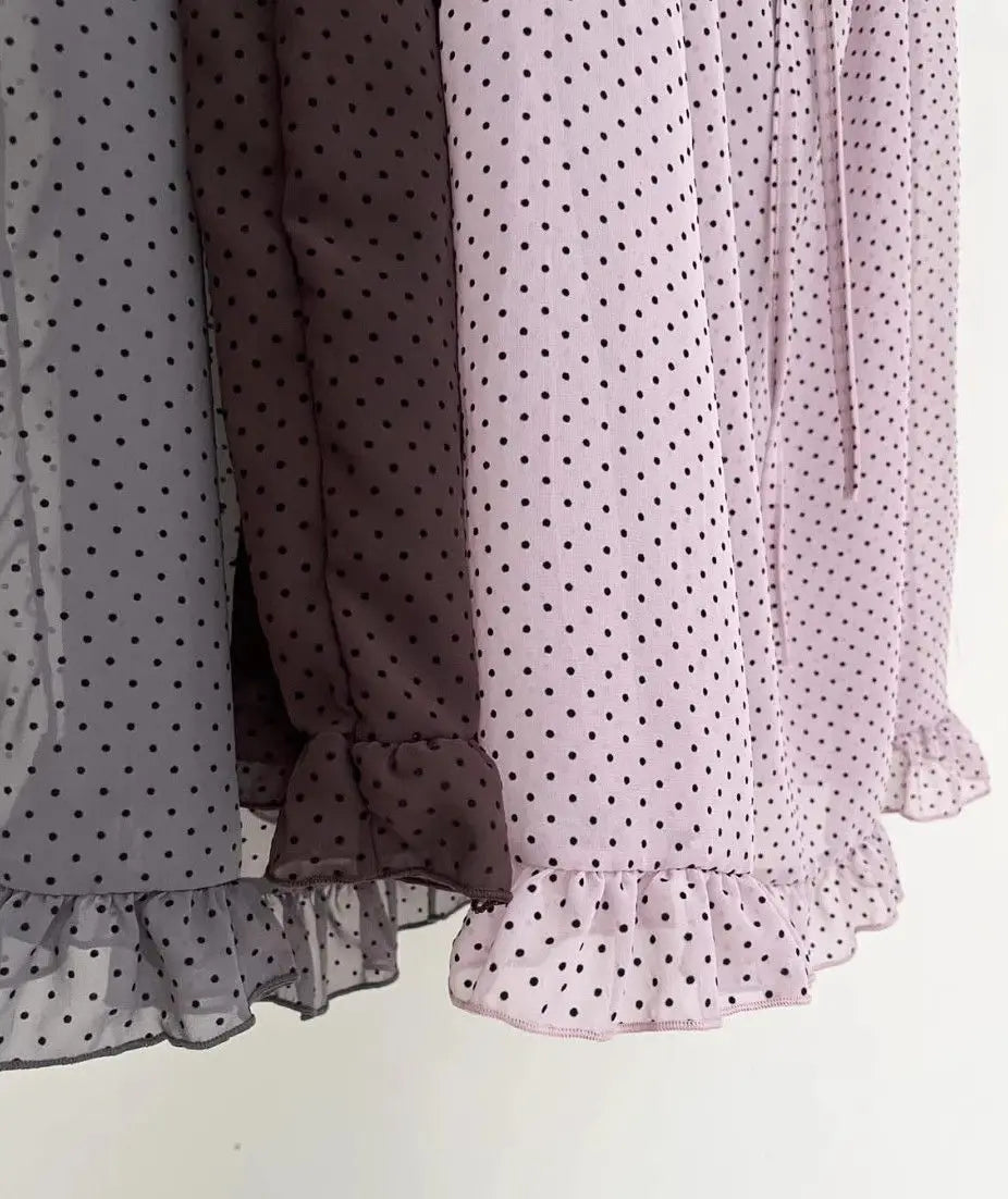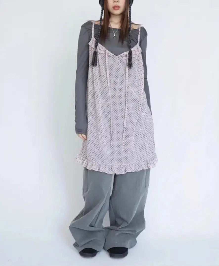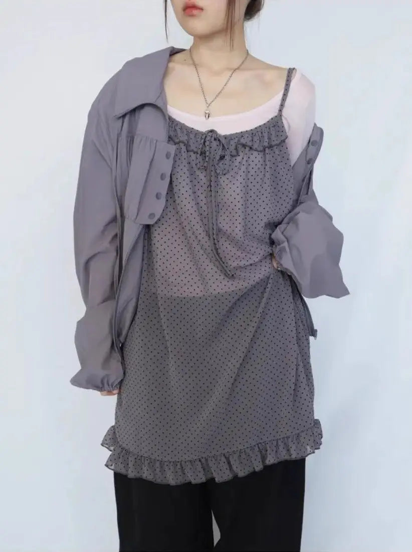 Hnewly Harajuku Japanese Style Tank Tops Women Vintage Polka Dot Ruffle Sleeveless Mesh Dress Sexy See-through Layered Wear