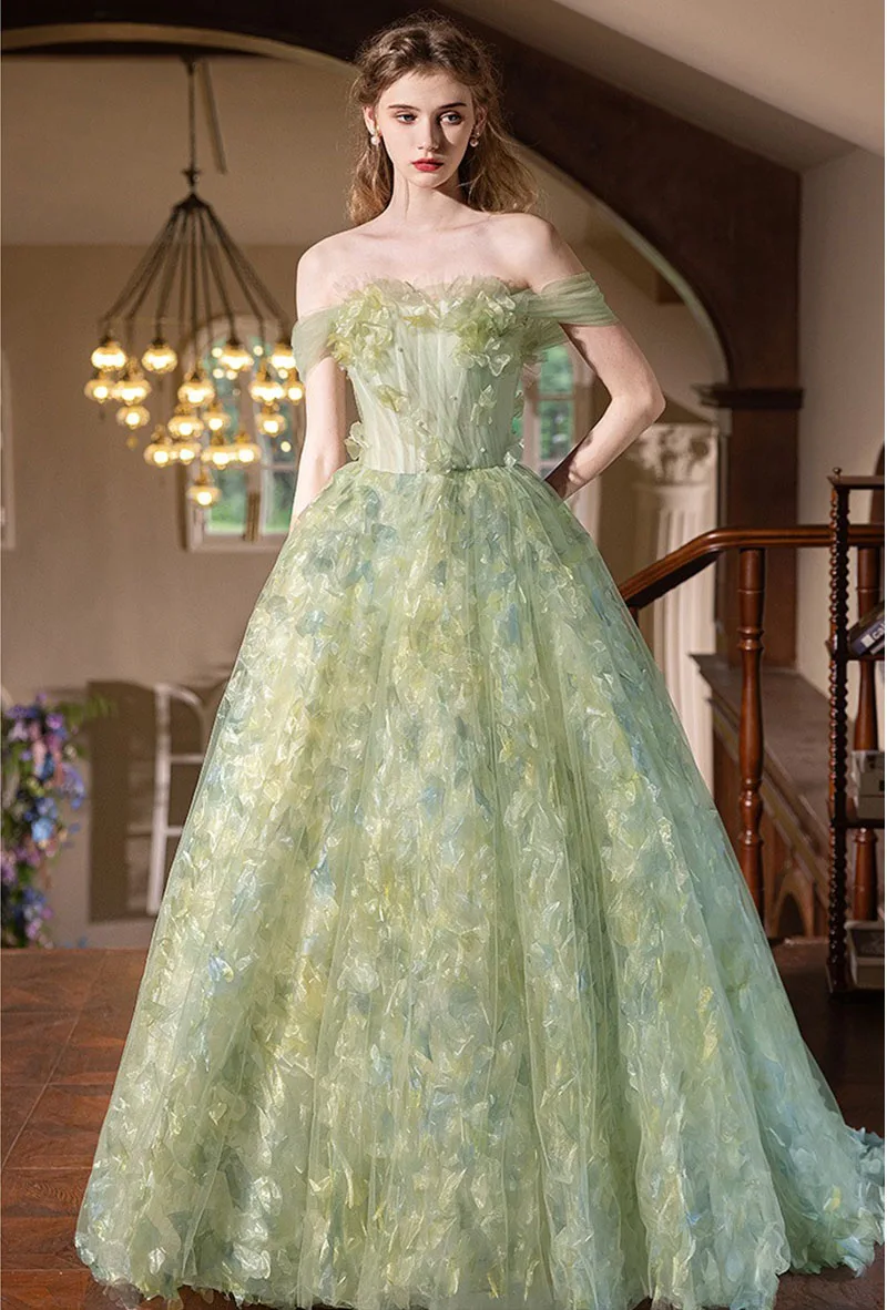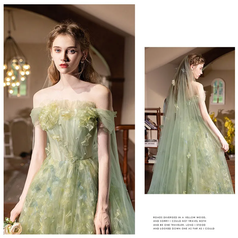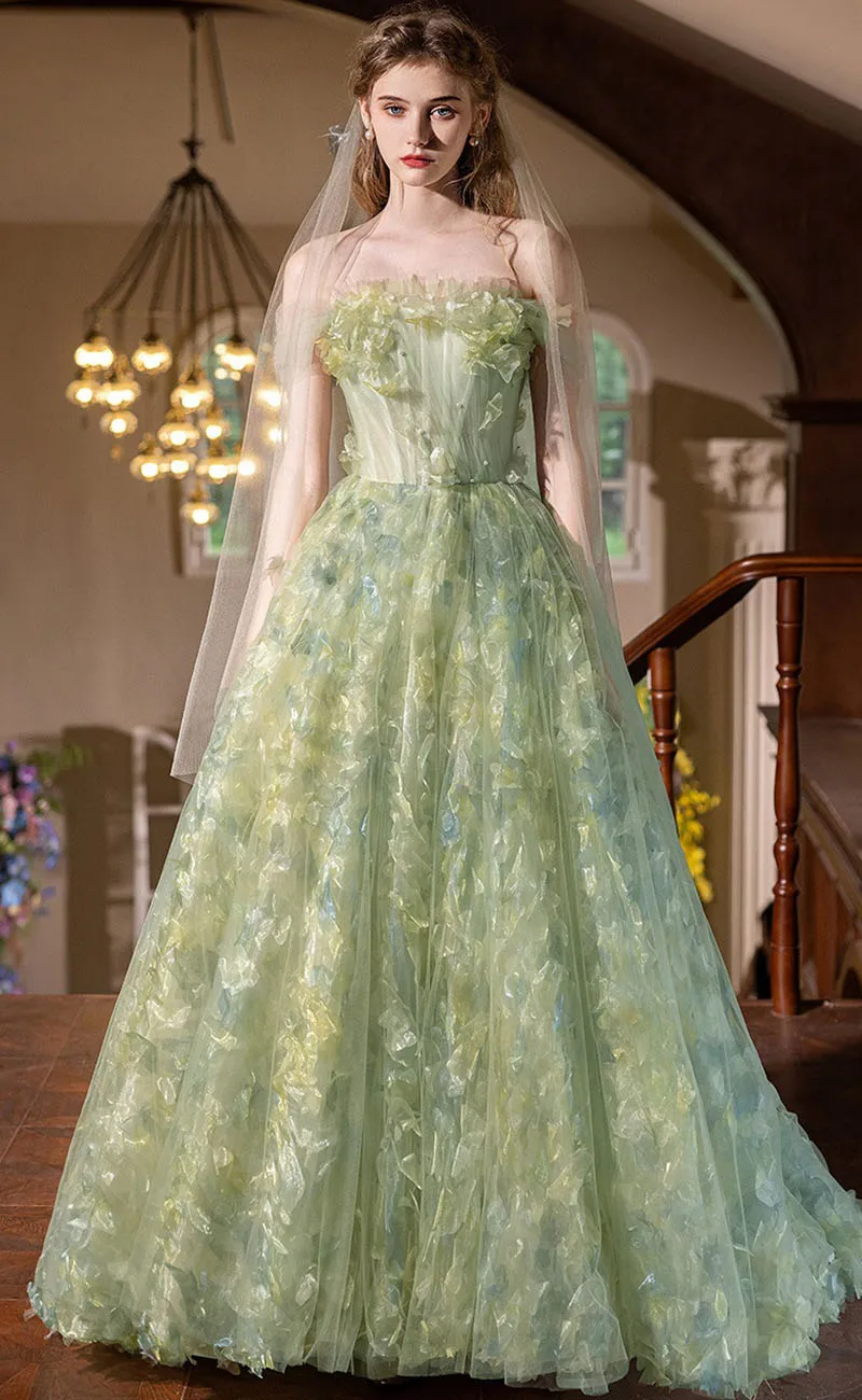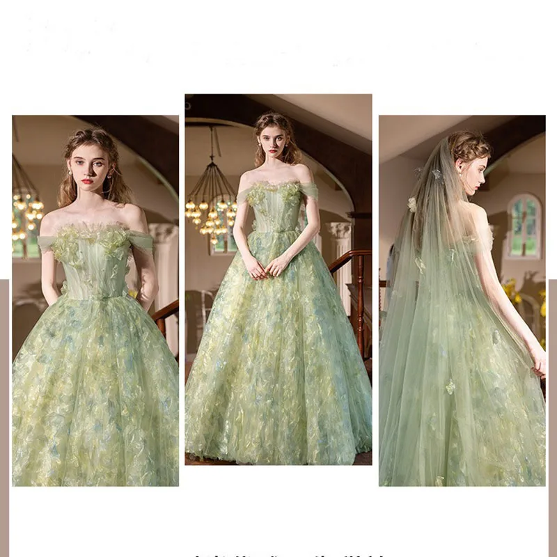 Hnewly High-end Light Green Luxury Evening Dress With Dreamy Forest-themed Flowers And Ethereal Charm