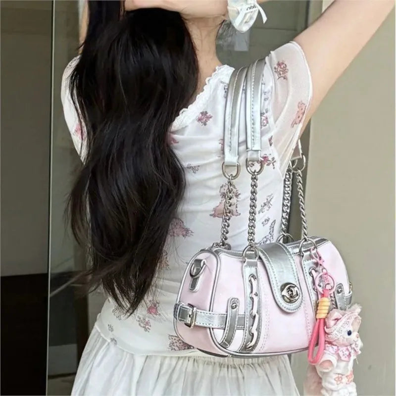Hnewly Hot Girls Pink Shoulder Bags Women Versatile Large Capacity Y2k Handbag Ladies Harajuku Aesthetic Patchwork Chain Underarm Bag