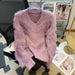 Hnewly Imitate Mink Sweater for Women's Spring Autumn New Loose Long Sleeved Pullover Knitted Top Korean Slim V-neck Short Sweaters