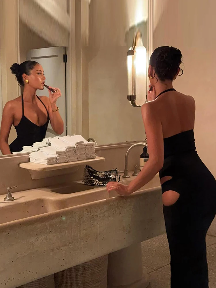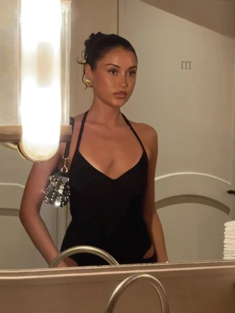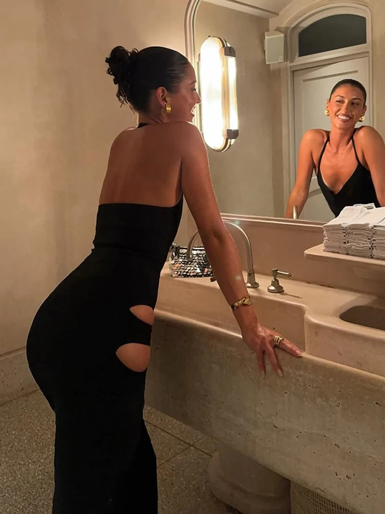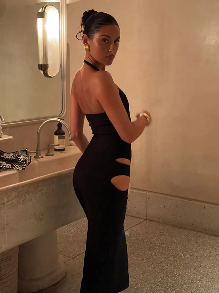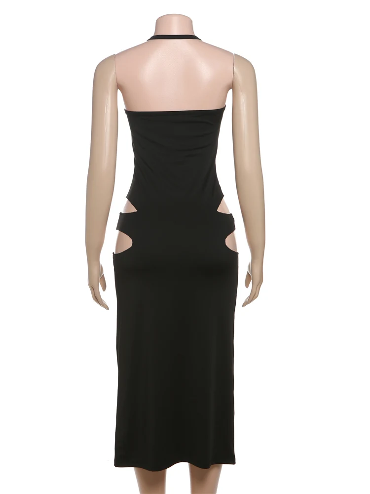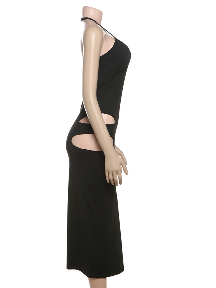 Hnewly Irregular Hollow Dress Women Sexy Halter Low-Neck Backless Sleeveless Robe Midnight Club Party Fashion Long Bodycon
