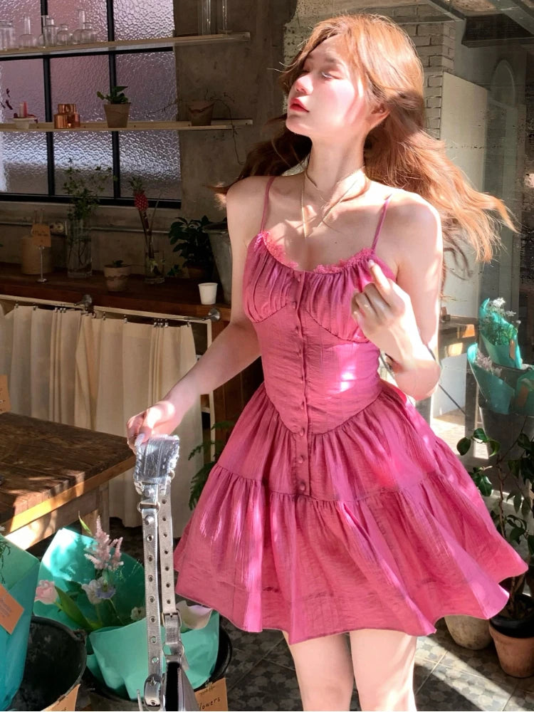 Hnewly Japanese Kawaii Sleeveless Y2k Mini Dress Women Slim Sexy Camisole Dress Summer Casual Evening Party Fashion Short Dress