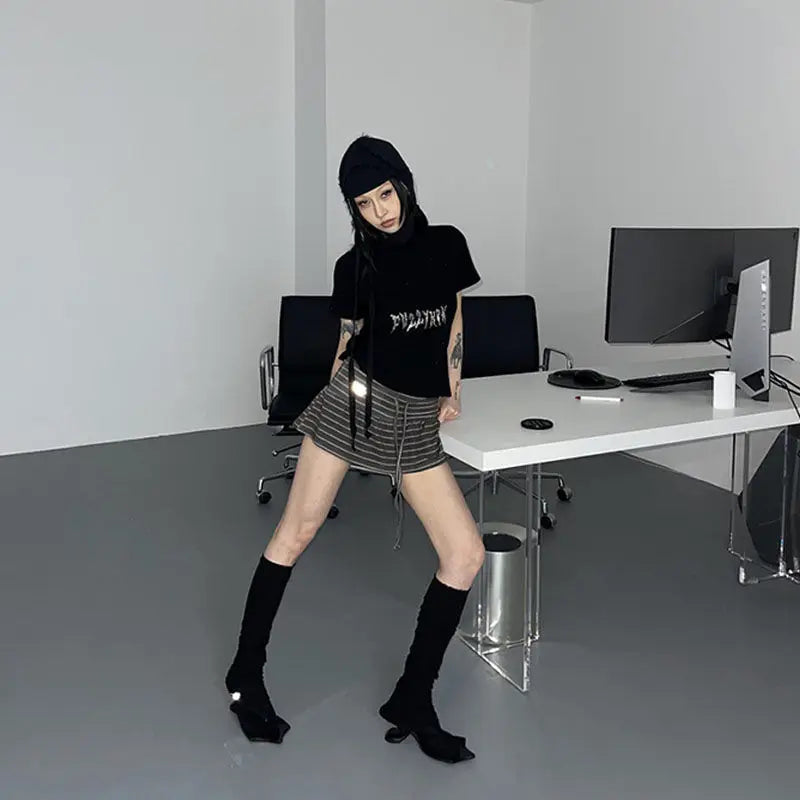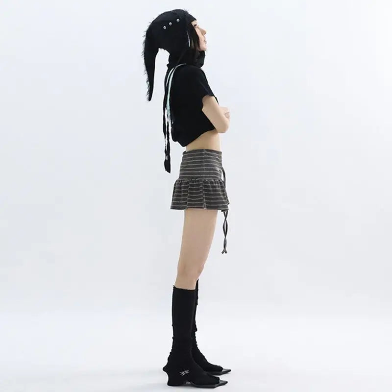 Hnewly Japanese Style Striped Skirt Women Vintage Harajuku Lace Up Ruffle Mini Skirt Streetwear Grunge Summer Short Skirts