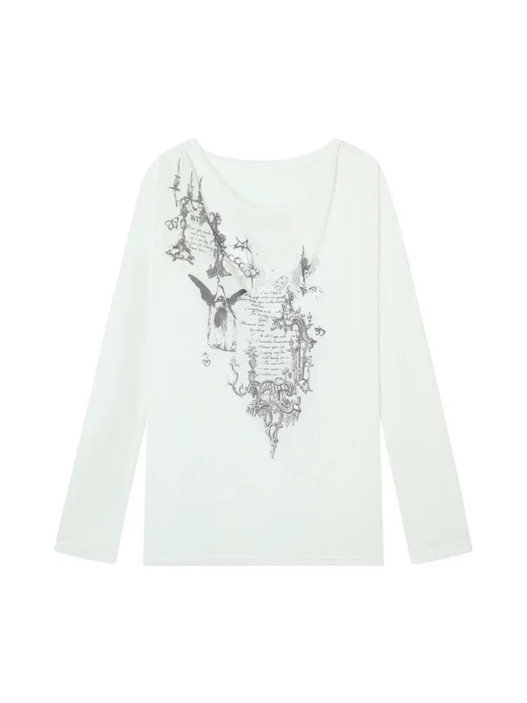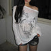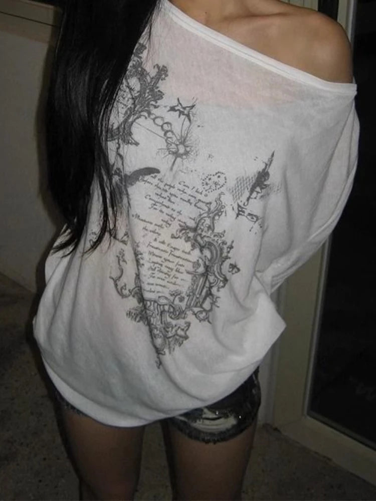 Hnewly Korean Fashion Graphic Tees Women Transparent Vintage Gothic T Shirt Long Sleeve Loose Punk T-shirt Streetwear Tops