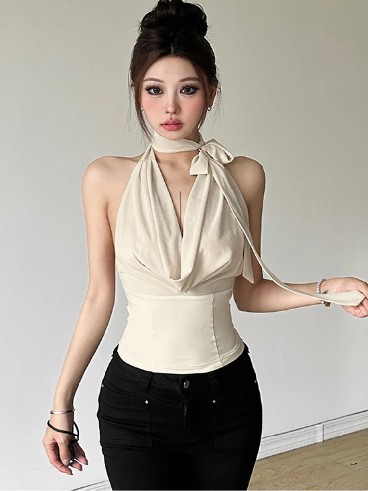 Hnewly Korean Fashion Sleeveless Tank Tops Women Vintage Plaid Y2k Crop Top Female Casual Outdoors Backless Blouse Chic Streetwear